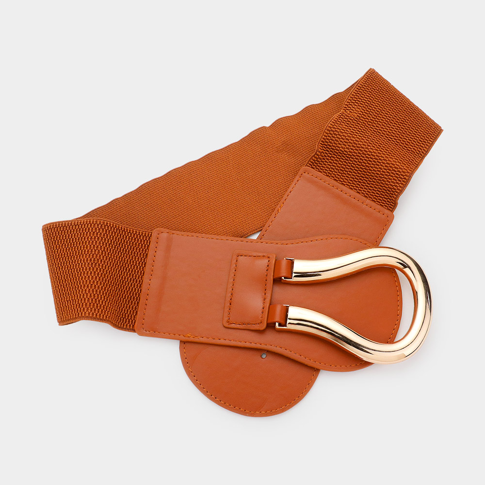 Details • Size : 3.75" H • Stretchable • Add structure and sophistication to any outfit with this wide stretch belt featuring a bold horseshoe buckle. Designed to flatter your waistline and elevate dresses, tunics, or jumpsuits with a touch of modern glam. Comfortable fit with statement appeal for daily or occasion wear.
