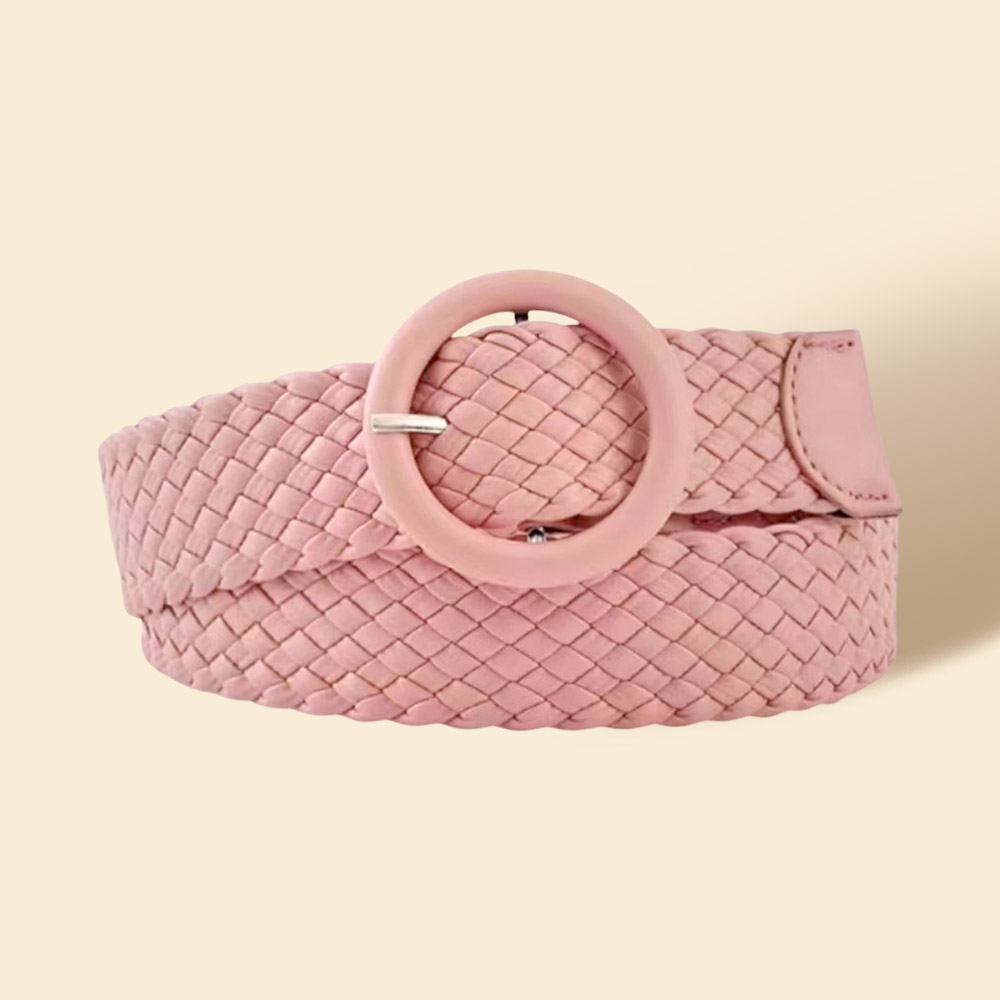 • Chic braided faux leather belt featuring a sleek round buckle. Perfect for adding texture and a polished finish to dresses, jeans, or skirts for both casual and refined looks.