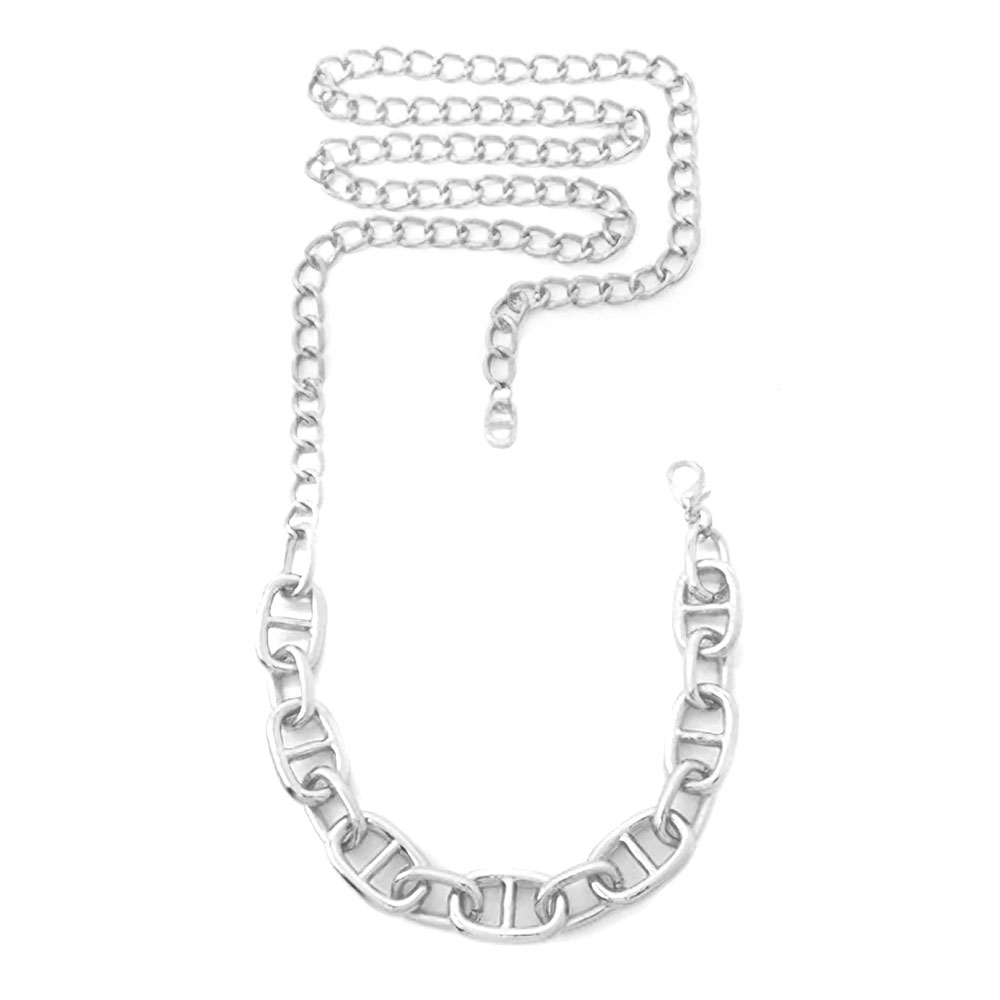 • Add a refined edge to your look with this square link chain waist belt featuring alternating open and solid links for a contemporary twist. Its chic design enhances your silhouette effortlessly, making it an ideal statement piece for both casual and dressy outfits.