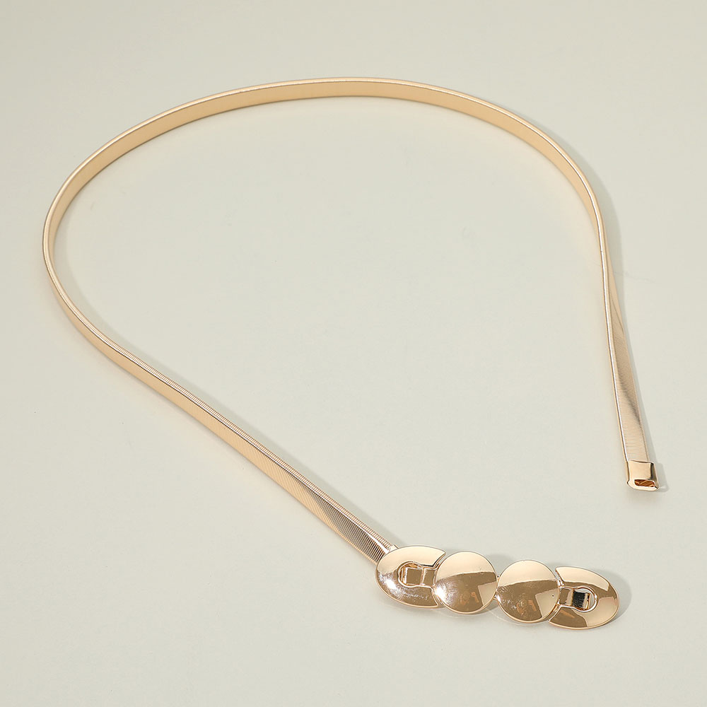 • Refine your silhouette with this elegant waist belt featuring a sleek strap and polished oval accents. Designed to enhance dresses and formalwear, this chic accessory adds a modern touch of sophistication, making it perfect for weddings, evening events, or elevating everyday looks.