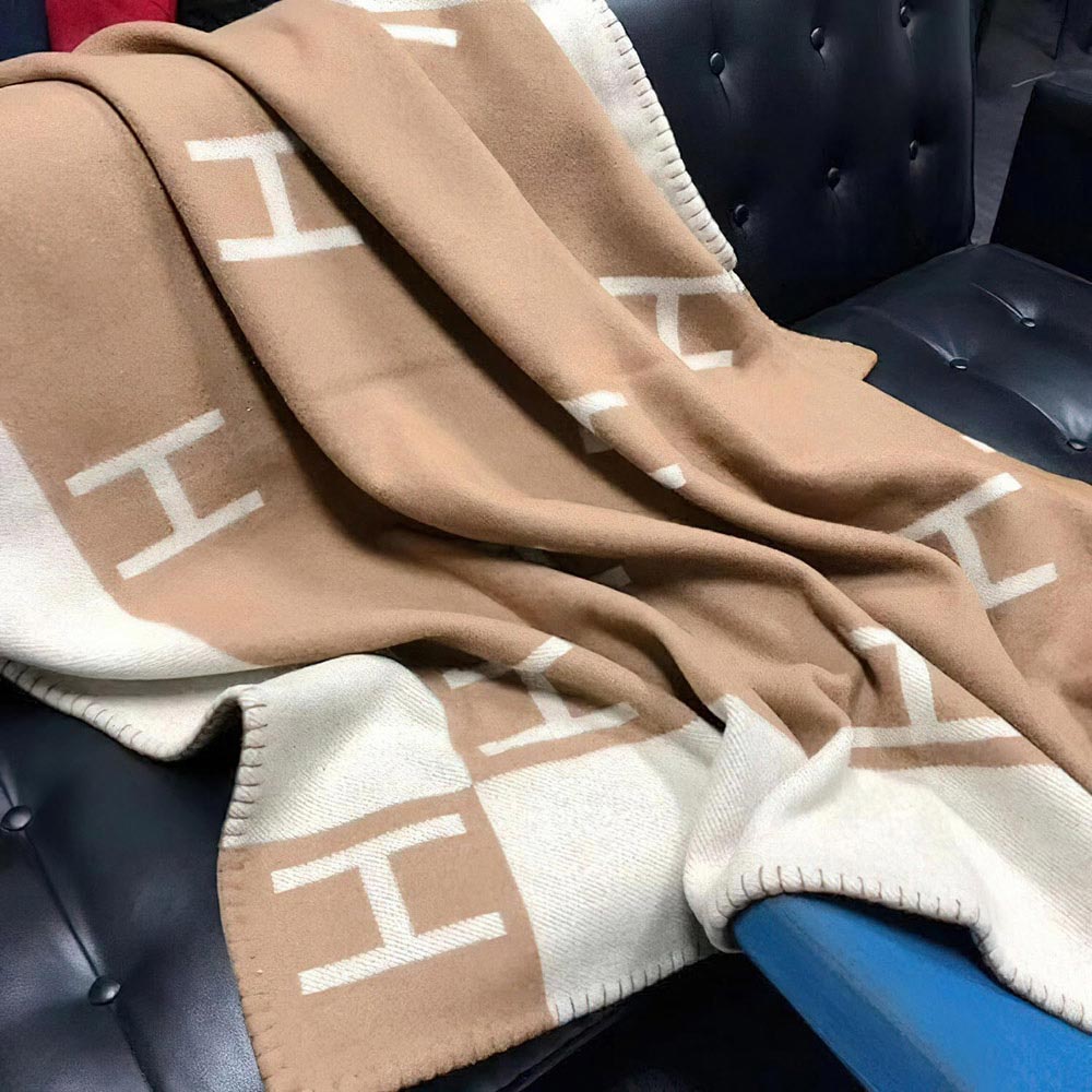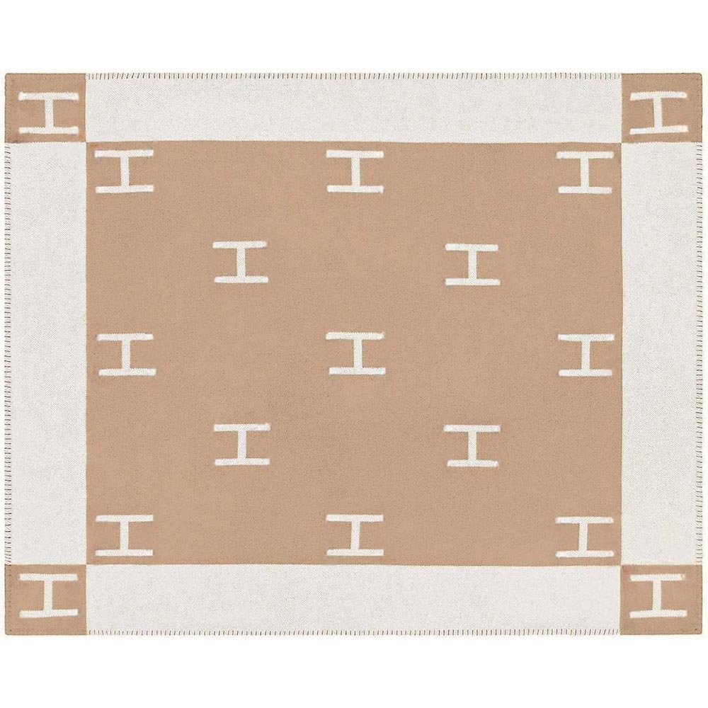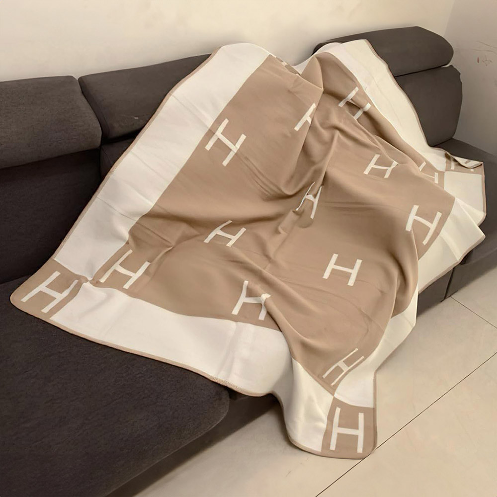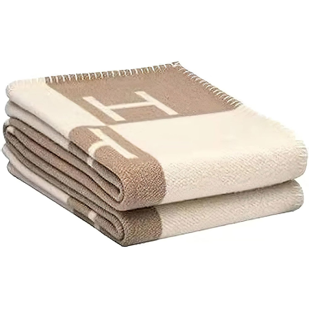 • Add timeless style to your home with this monogrammed border throw blanket in beige. Featuring a bold lettered pattern and contrasting trim, it’s soft, lightweight, and perfect for draping over a sofa or bed. A cozy yet chic accent that blends comfort with modern elegance.