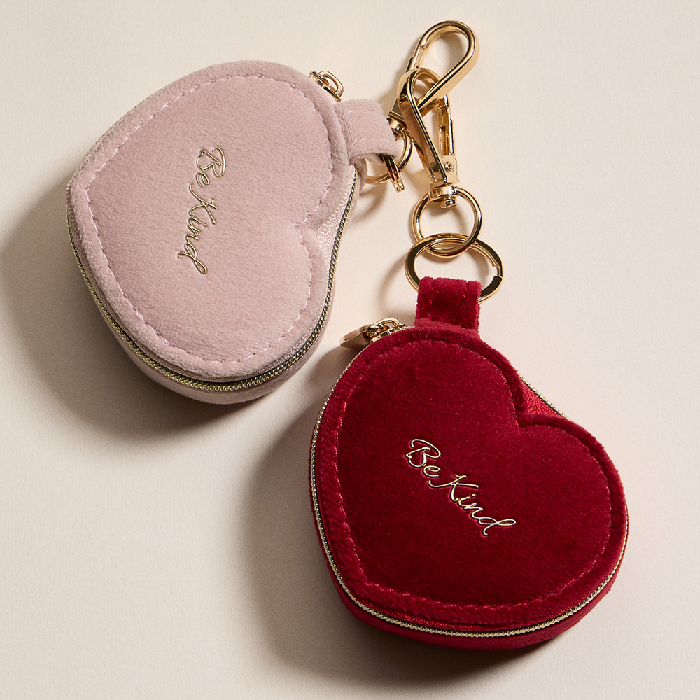 BE KIND Embroidered Heart Shaped Travel Jewelry Case Keychain Bag Charm