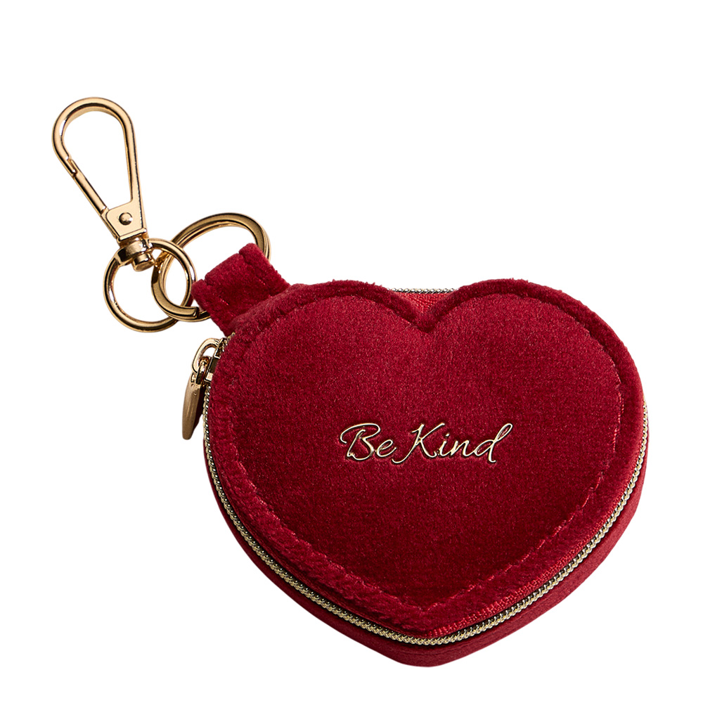 BE KIND Embroidered Heart Shaped Travel Jewelry Case Keychain Bag Charm
