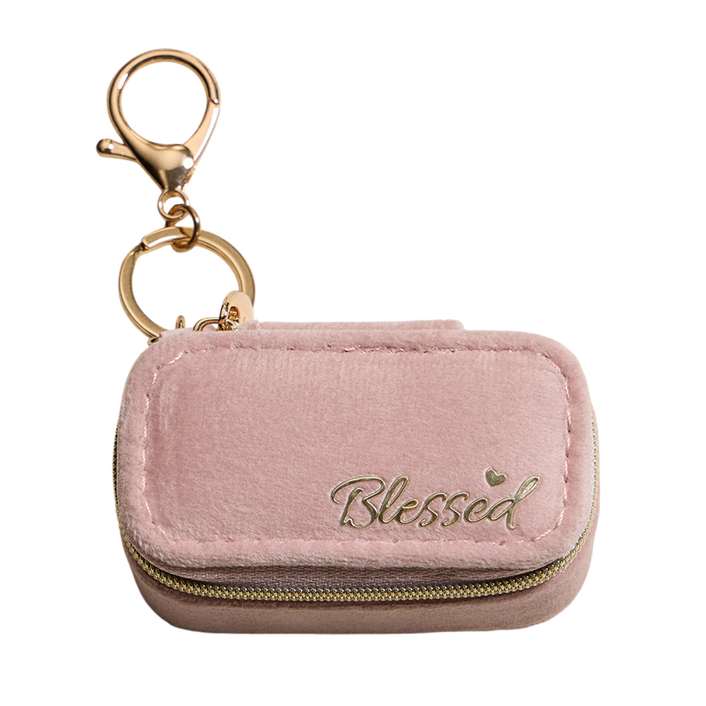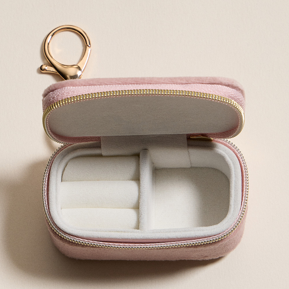 Details • Size : 3" X 1.5" X 1.5" • Zipper closure for secure storage • Polished gold-tone keyring with clasp hardware • Compact storage for rings, earrings & small jewelry • Ideal for travel, everyday use, or thoughtful gifts • Organize your jewelry anywhere with this rectangular travel case keychain. Designed with zipper closure and compartments for rings, earrings, and small accessories, it clips easily to bags or keys. A stylish and practical portable organizer, perfect for travel and thoughtful gifting.