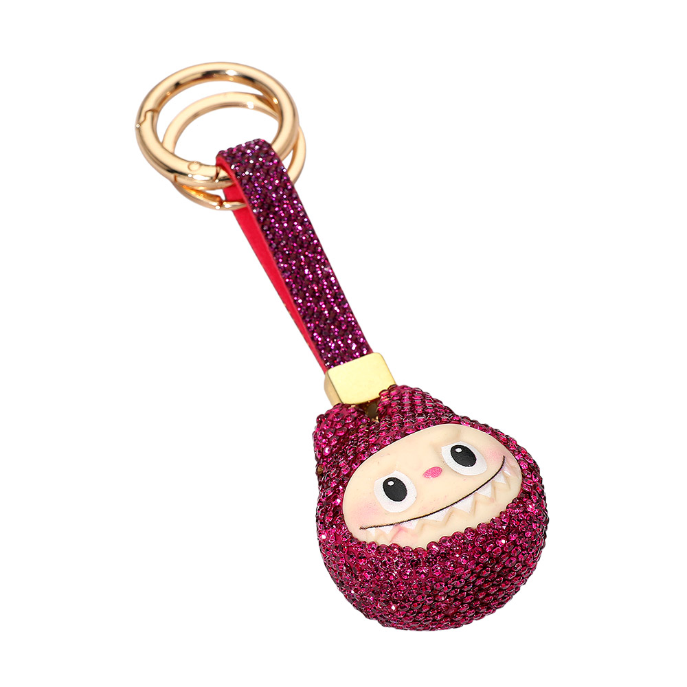 Details • Size : 1.7" X 2", 5.5" L • Adorable character keychain embellished with sparkling rhinestones and a matching wrist strap. Perfect for decorating handbags, backpacks, or car keys. A fun and stylish accessory that adds charm, shine, and personality to your everyday essentials or makes a delightful gift.