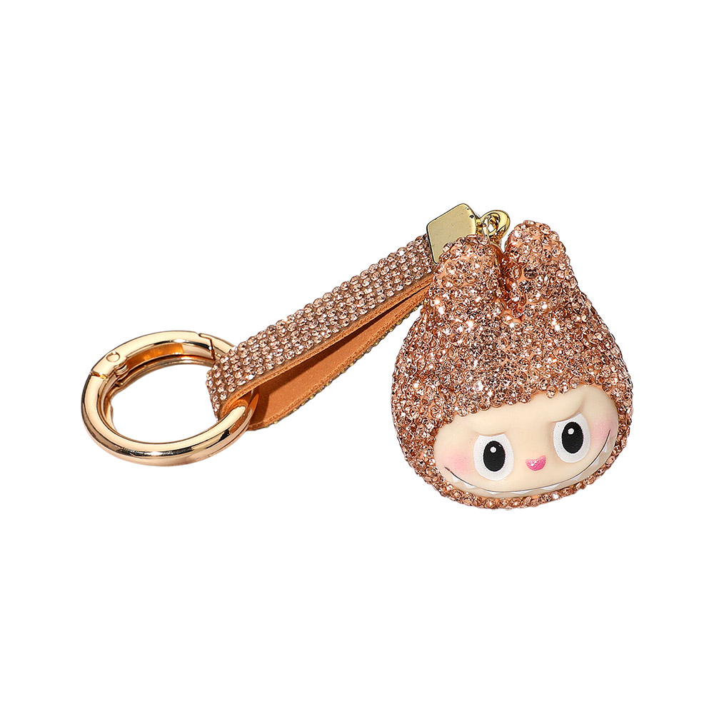 • Adorable character keychain embellished with sparkling rhinestones and a matching wrist strap. Perfect for decorating handbags, backpacks, or car keys. A fun and stylish accessory that adds charm, shine, and personality to your everyday essentials or makes a delightful gift.