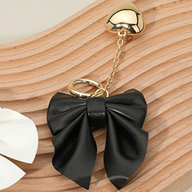 Faux Leather Bow Metal Heart Drop Keychain Bag Charm