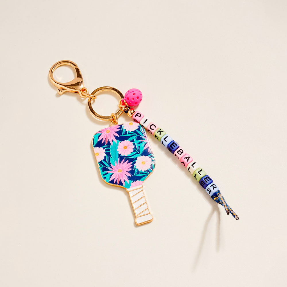 Details • Size : 6.25" L, 1.5" X 5.25" • This pickleball paddle keychain bag charm features a playful paddle motif with decorative accents that add personality to keys, backpacks, and handbags. Designed for pickleball fans, it makes a fun gift, sporty accessory, or everyday charm that keeps essentials easy to spot and stylish on the go. • Lead and Nickel Compliant