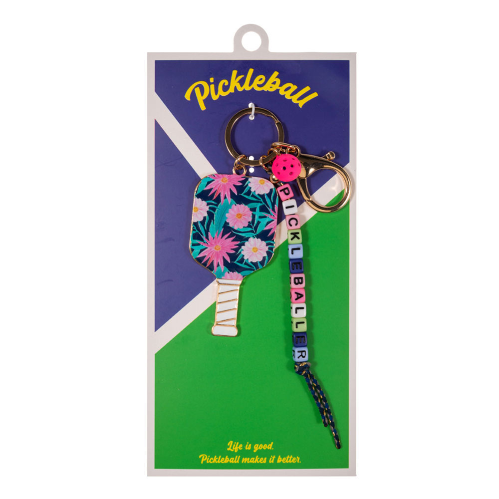 Floral Pickleball Paddle PICKLEBALLER Beaded Keychain Bag Charm