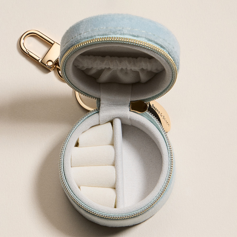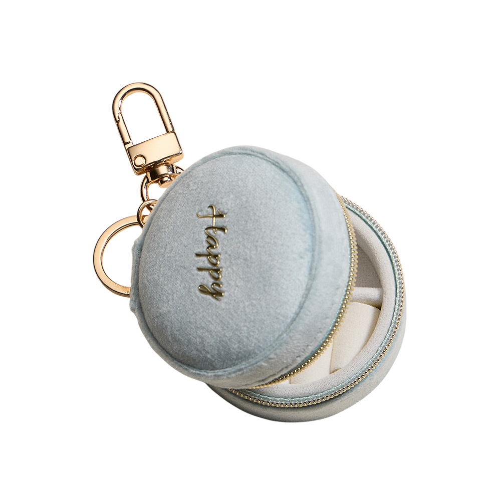 • Keep your jewelry safe and organized with this compact round travel case. Features a zipper closure, interior slots for rings and earrings, and a keychain clip for convenience. Perfect for travel, handbags, or daily use, this portable storage box ensures your accessories stay secure anywhere.