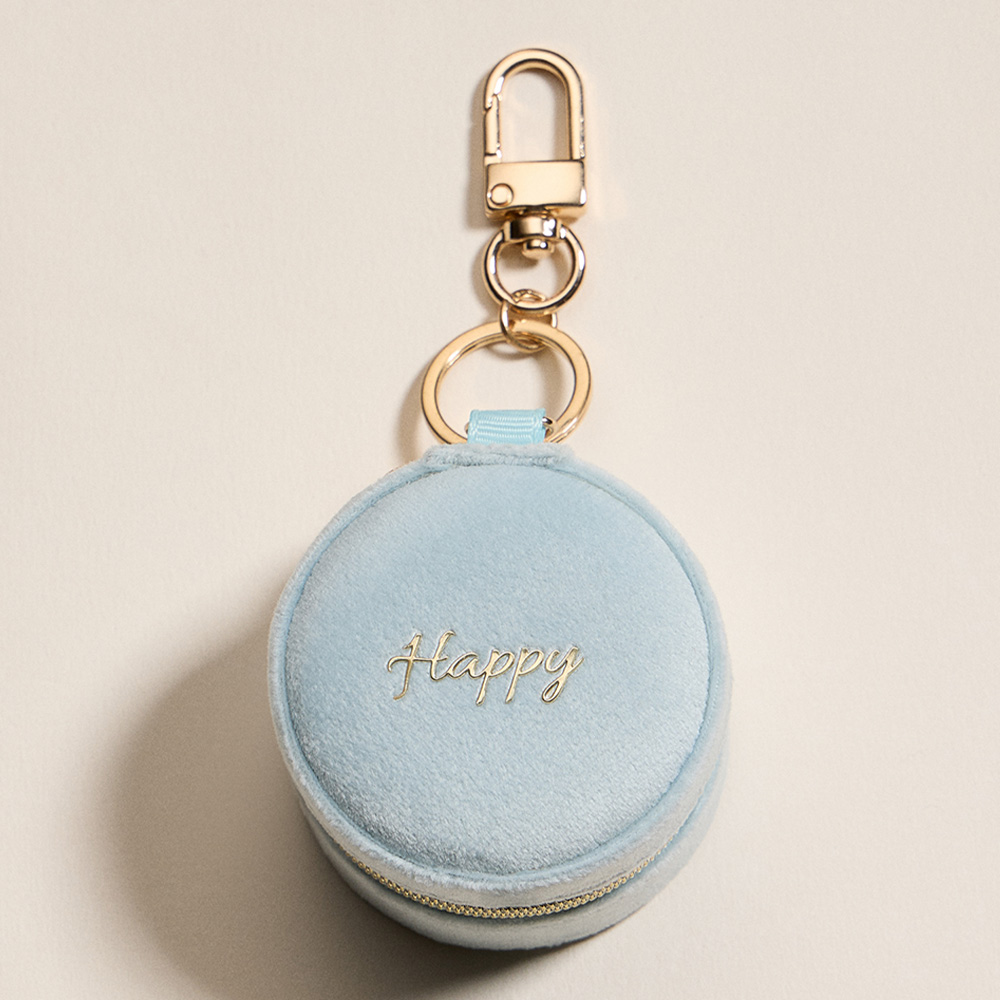 HAPPY Embroidered Round Shaped Travel Jewelry Case Keychain Bag Charm