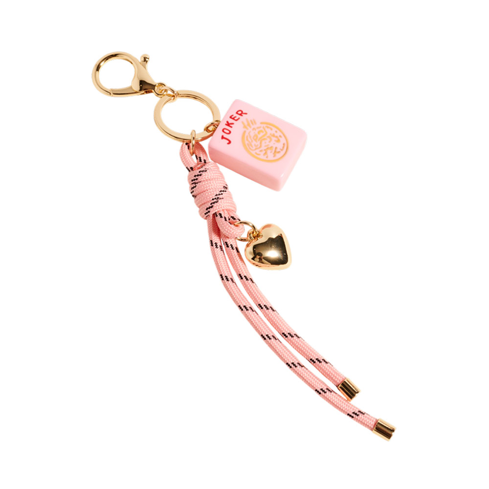 Mahjong Tile Heart Charm Knot Strap Drop Keychain Bag Charm