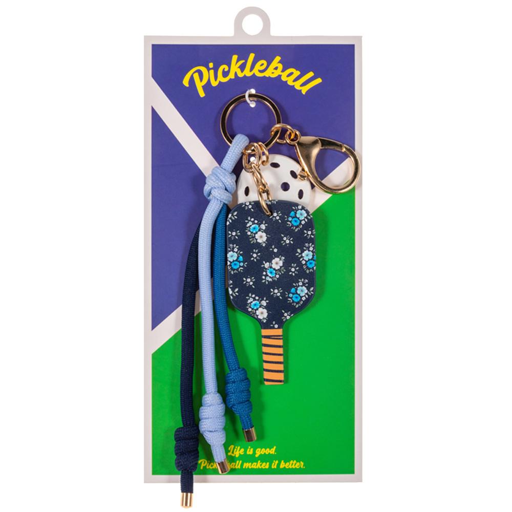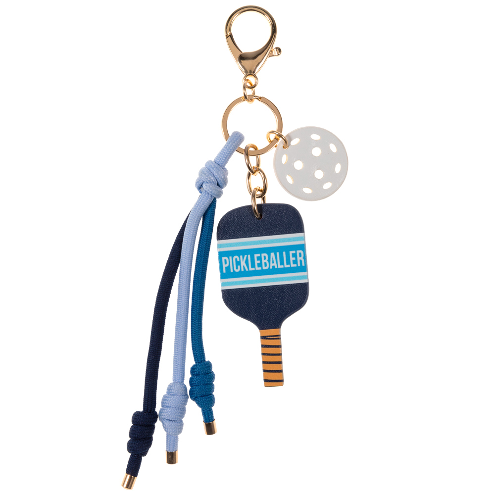 • This pickleball-themed keychain features a playful paddle charm paired with a perforated ball accent and knotted cord tassels for added texture and movement. Designed with a secure clasp for easy attachment, it’s a fun accessory for keys, bags, or backpacks and makes a great gift for pickleball fans, team events, and sporty lifestyle collections.