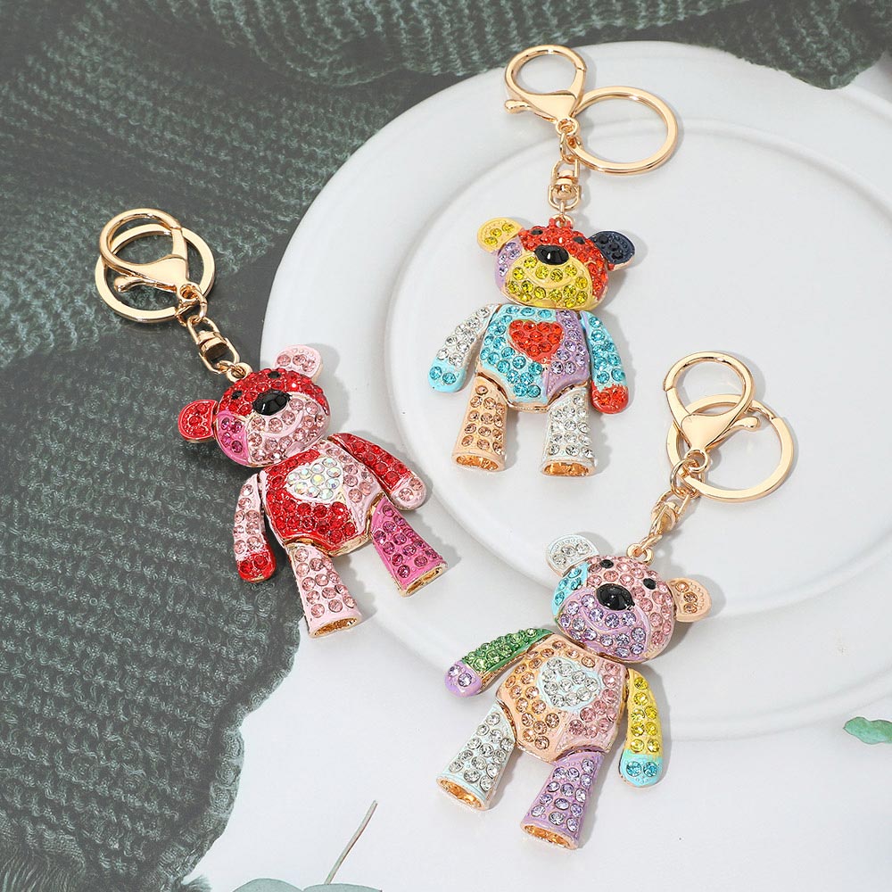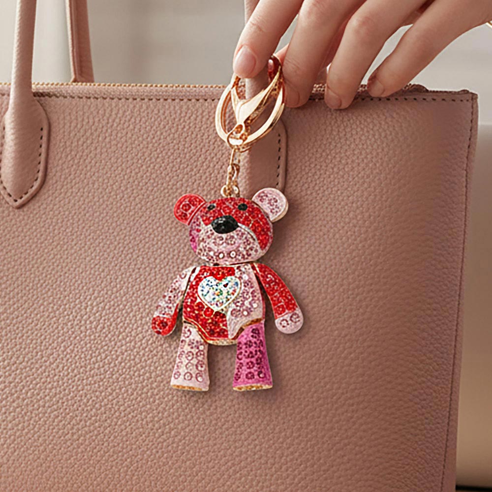 • Rhinestone teddy bear keychain charm featuring a playful character design that adds fun personality to keys, handbags, backpacks, and zipper pulls. A great boutique accessory for gifting, impulse buys, party favors, and everyday carry, appealing to customers who love cute, collectible statement charms.