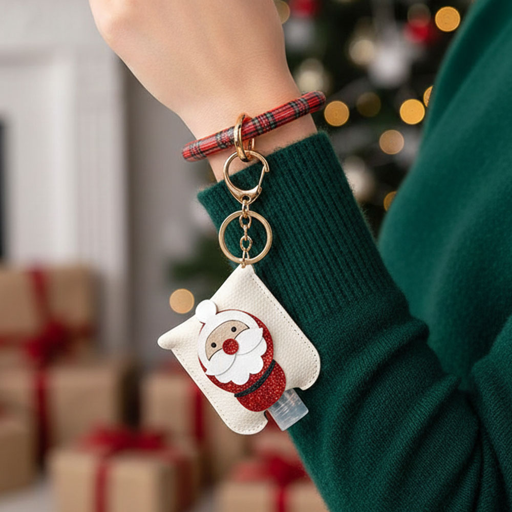 • Festive portable sanitizer holder keychain featuring a playful Santa design for easy, on-the-go access to hand sanitizer. Practical and decorative, it clips easily to bags, keys, or wristlets, making it ideal for daily errands, travel, parties, and seasonal gifting.