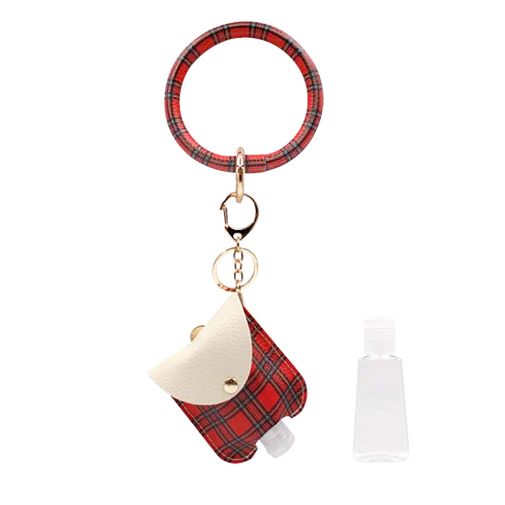 Santa Hat Faux Leather Case with Empty Hand Sanitizer Bottle Set Keychain