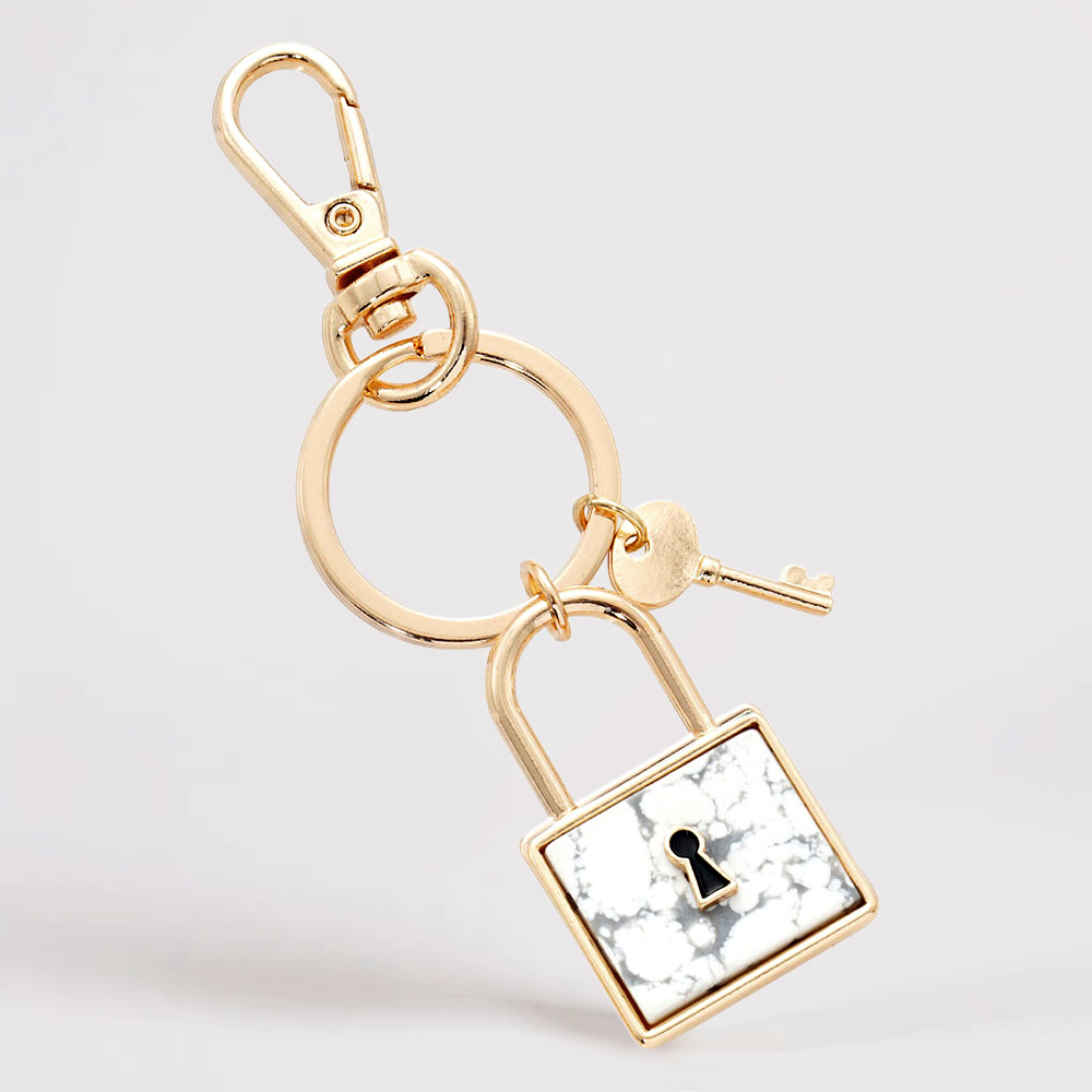 Details • Size : 0.8" X 1.4", 3.5" L • This padlock and key keychain is a trendy accessory designed for everyday use. Featuring a lock charm with key detail, it adds a touch of style while keeping your keys organized and secure. Perfect for handbags, backpacks, or key rings. • Lead and Nickel Compliant