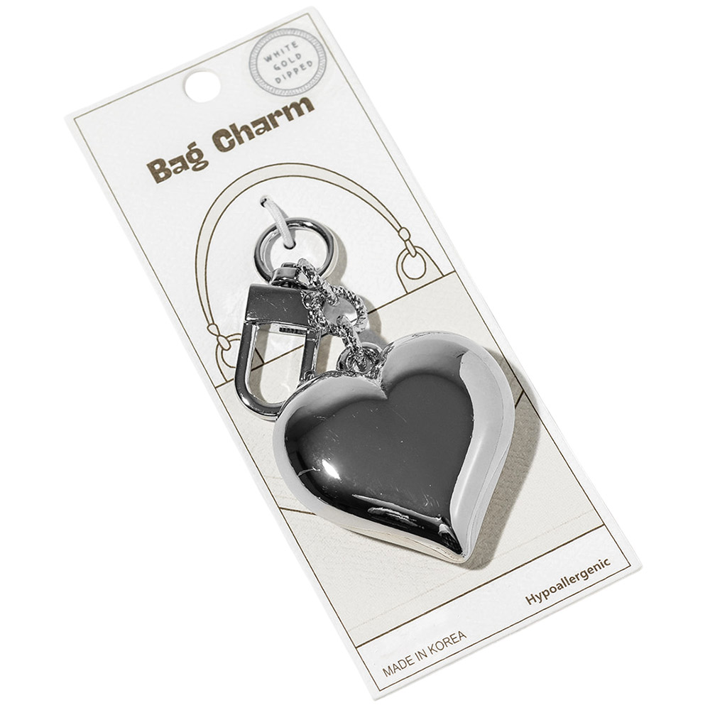 White Gold Dipped Bold Puffy Heart Drop Keychain Bag Charm