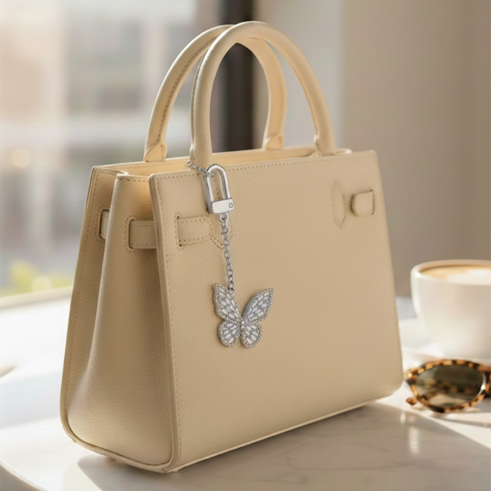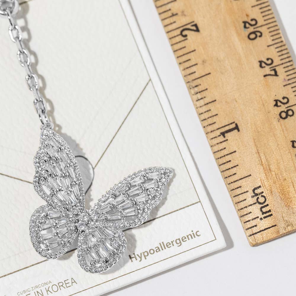 Details • Size : 3.5" L, 1.4" X 2.5" • Elegant butterfly bag charm designed with shimmering crystal accents for a graceful, eye-catching statement. Clips easily onto handbags, totes, backpacks, or keys to add movement and shine. A stylish accessory perfect for gifting, seasonal collections, and boutique displays seeking feminine charm. • Lead and Nickel Compliant • Hypoallergenic • Made In Korea • Gold Dipped • CZ Cubic Zirconia