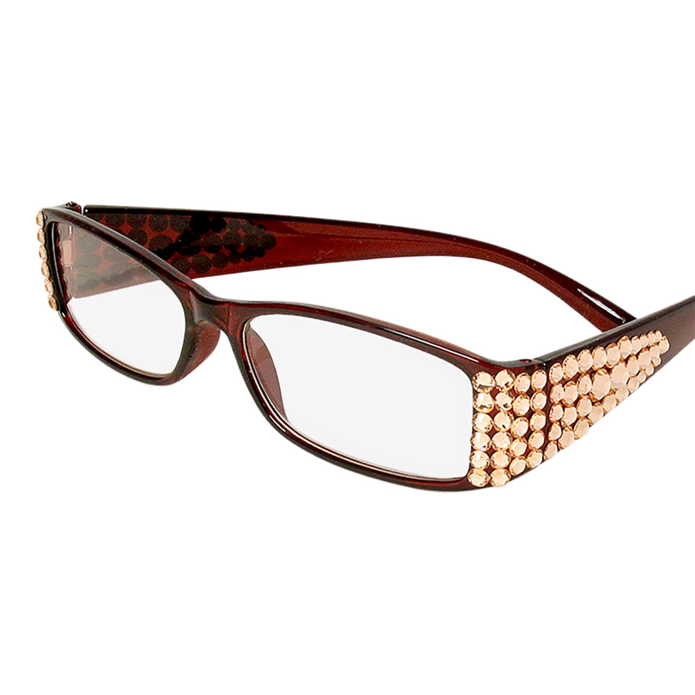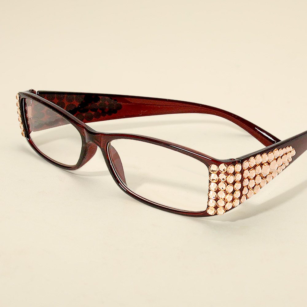 • Stylish reading glasses designed with sparkling embellishments along the frames. Offering both function and flair, they bring a touch of glamour to everyday eyewear while ensuring comfort and clarity for daily use.
