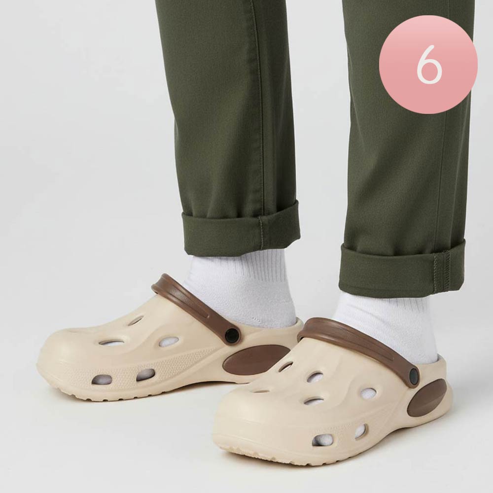 Details • Size : 6 Pairs Assorted size in each pack • 2 Small, 2 Medium, 2 Large • S Size : US 7 ~ 8 (37-38) • M Size : US 9 ~ 10 (39-40) • L Size : US 11 ~ 12 (44-42) • Material : 100% EVA • Everyday clog style footwear featuring a breathable perforated design, cushioned footbed, and flexible heel strap for wear as a slide or secure fit. Lightweight and easy to style for casual days and travel.