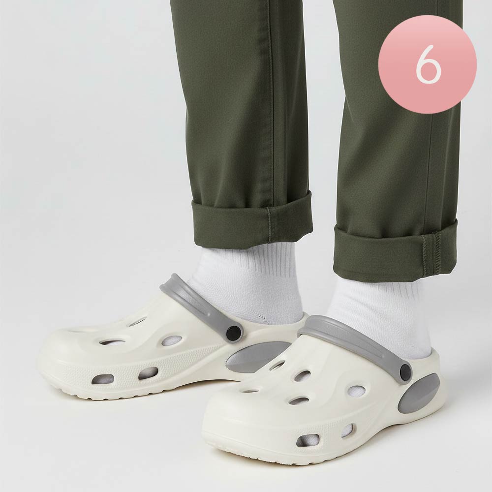 • Everyday clog style footwear featuring a breathable perforated design, cushioned footbed, and flexible heel strap for wear as a slide or secure fit. Lightweight and easy to style for casual days and travel.