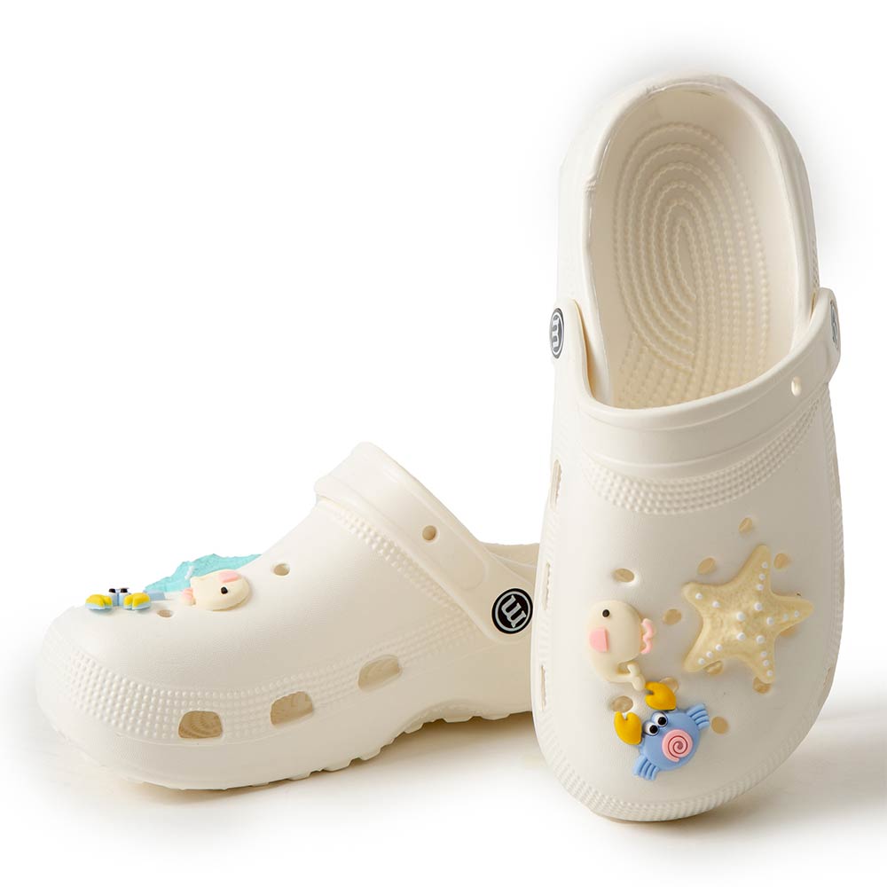 Details • Size : 6 Pairs Assorted size in each pack • Small, 2 Medium, 2 Large • S Size : US 6 ~ 7 (36-37) • M Size : US 8 ~ 9 (38-39) • L Size : US 10 ~ 14 (40-41) • Material : 100% EVA • Playful clog style footwear designed with fun decorative charms, breathable perforations, and a cushioned footbed for everyday comfort. Features a pivot heel strap for secure wear or easy slip-on styling, ideal for casual outings, travel, and relaxed daily looks.