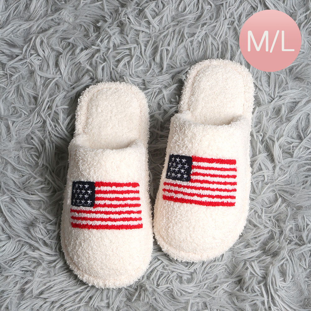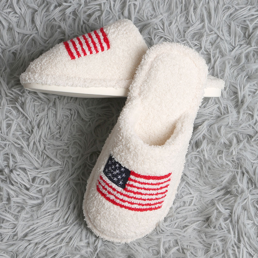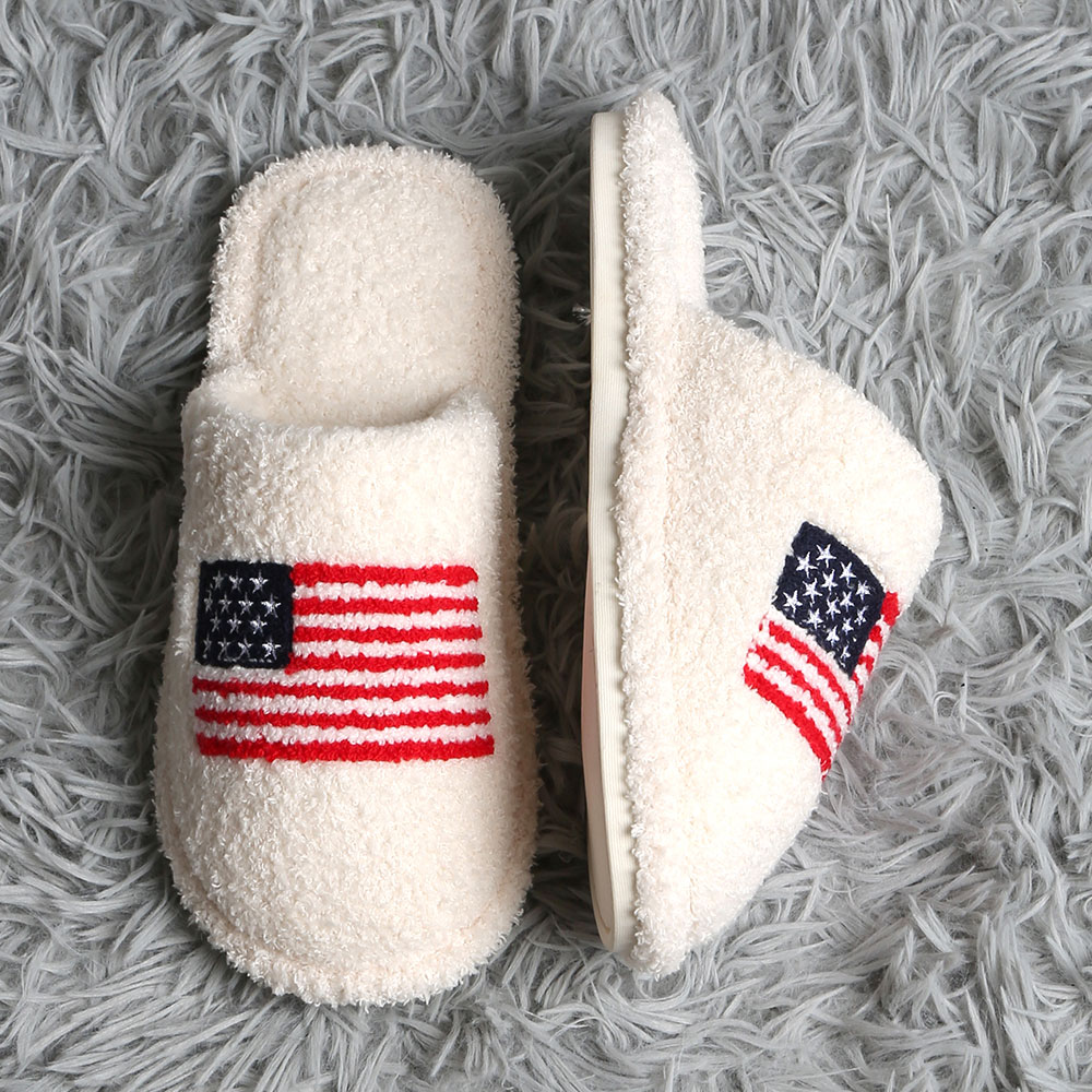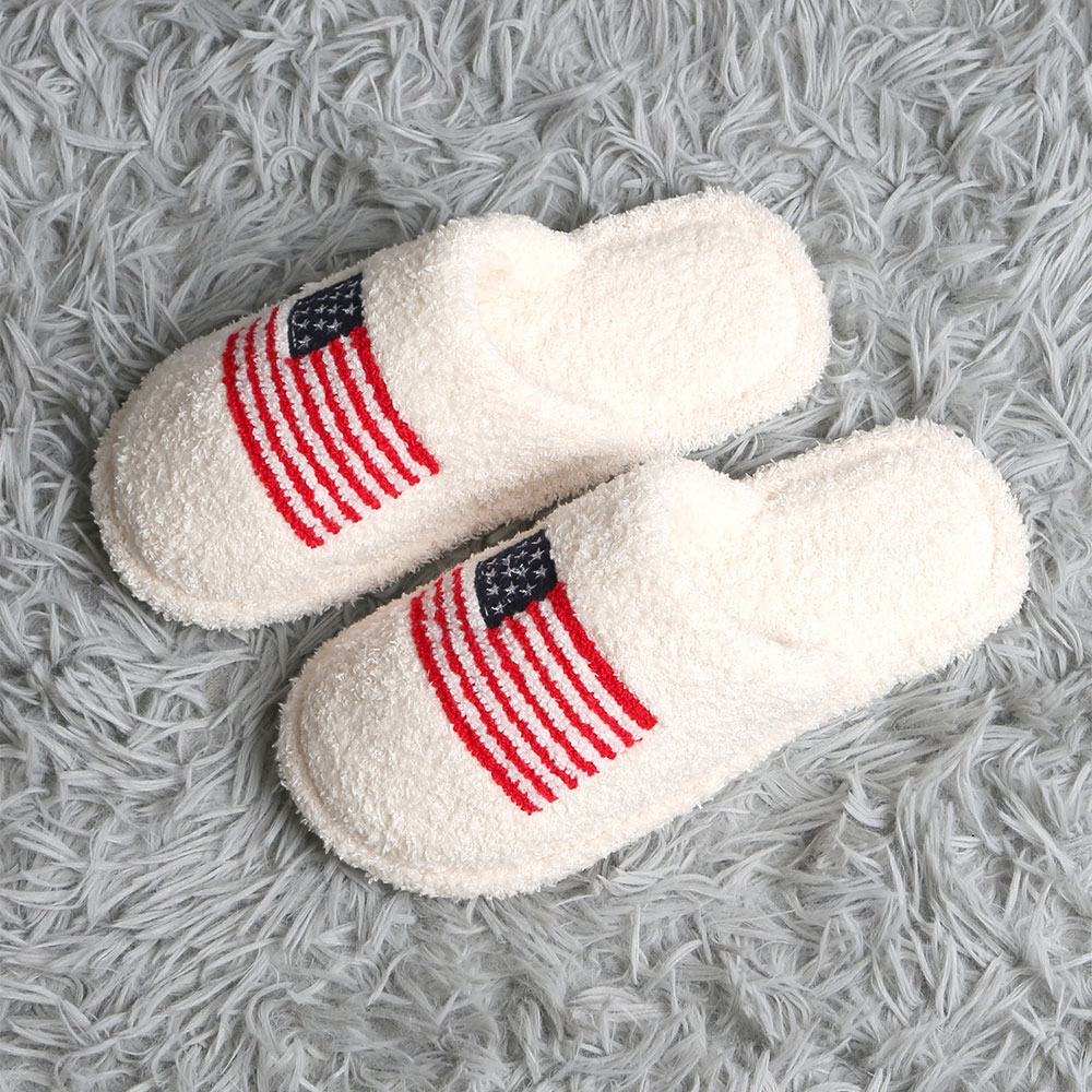 American USA Flag Embroidered Soft Home Indoor Floor Slippers