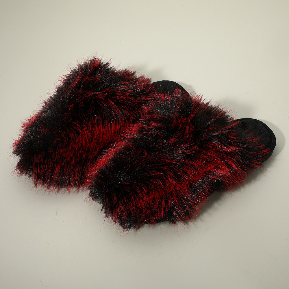 Fluffy Faux Fox Fur Indoor Floor Slippers