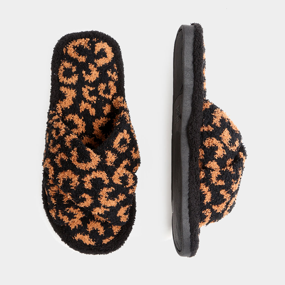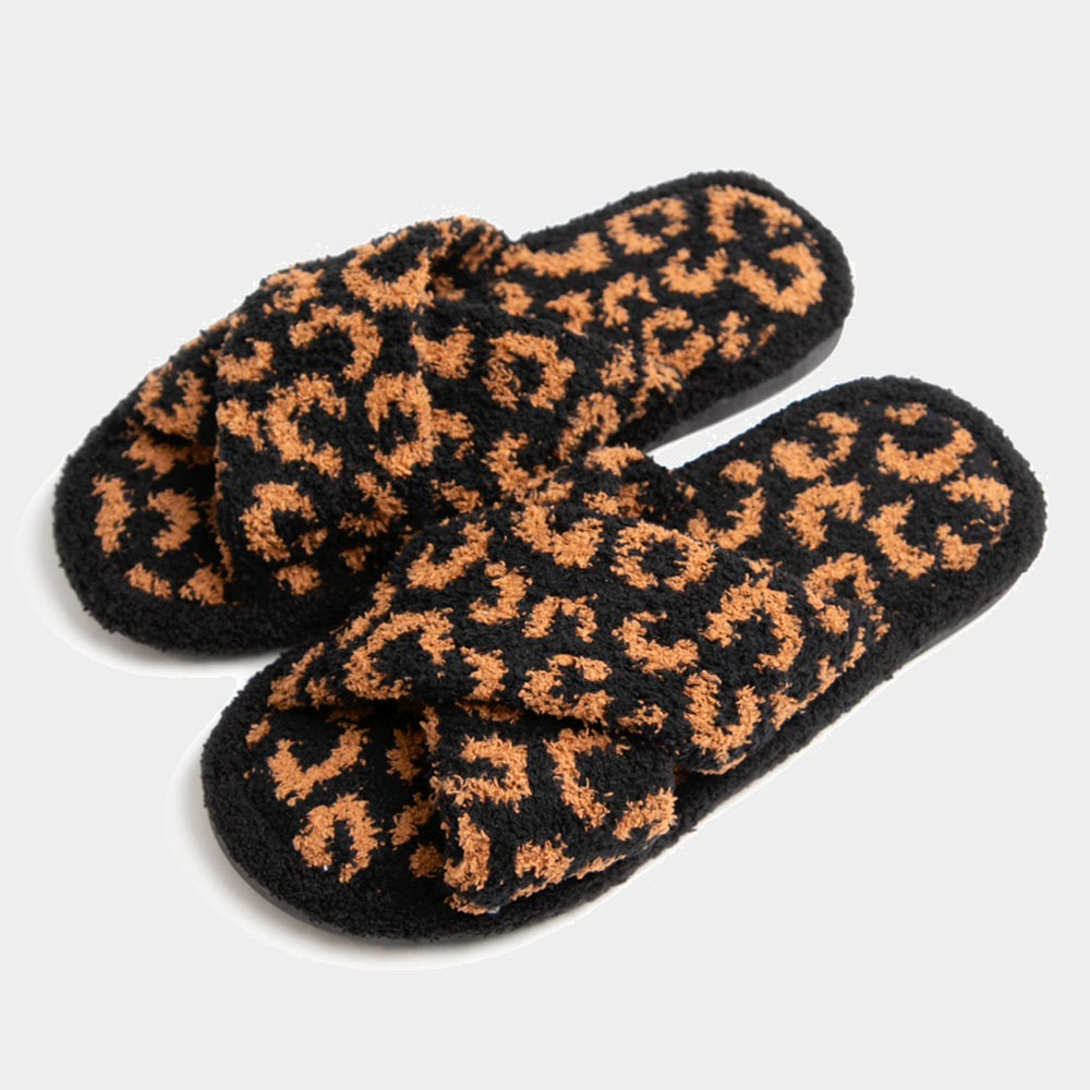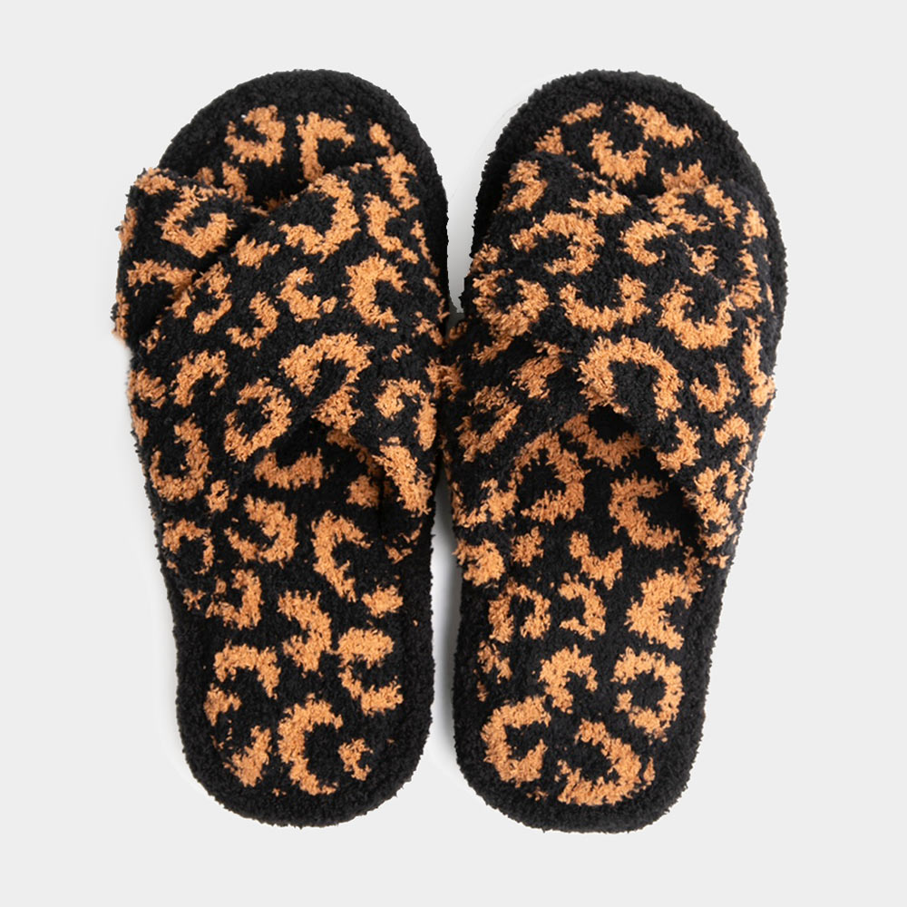 Leopard Patterned Crisscross Soft Home Indoor Floor Slippers