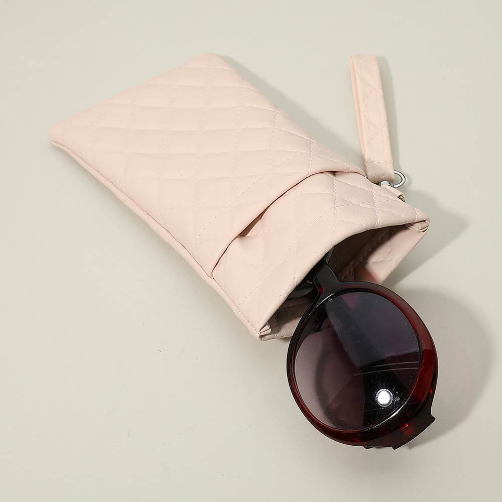 • Slim quilted sunglasses pouch designed to protect eyewear while keeping a lightweight, compact profile. Features an easy wrist strap for carrying and quick access. Ideal for everyday use, travel, gift shops, boutiques, and stylish organization of sunglasses or small essentials.