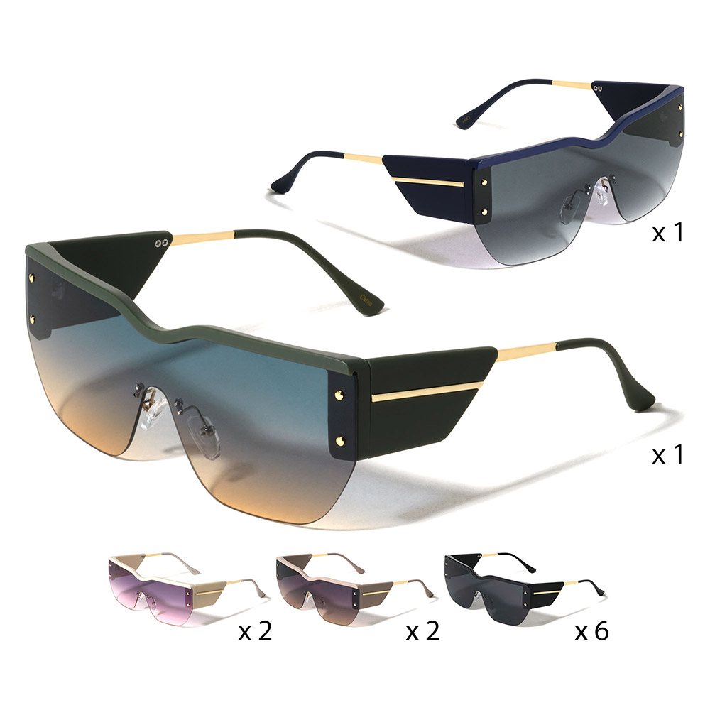 Details • Size : 5.75" X 2.2" • UV Protection • Oversized shield fashion sunglasses multipack featuring bold silhouettes and modern statement styling. Designed for trend-forward displays, resale flexibility, and everyday wear, this assortment delivers eye-catching appeal for boutiques, seasonal promotions, and fashion accessory collections.