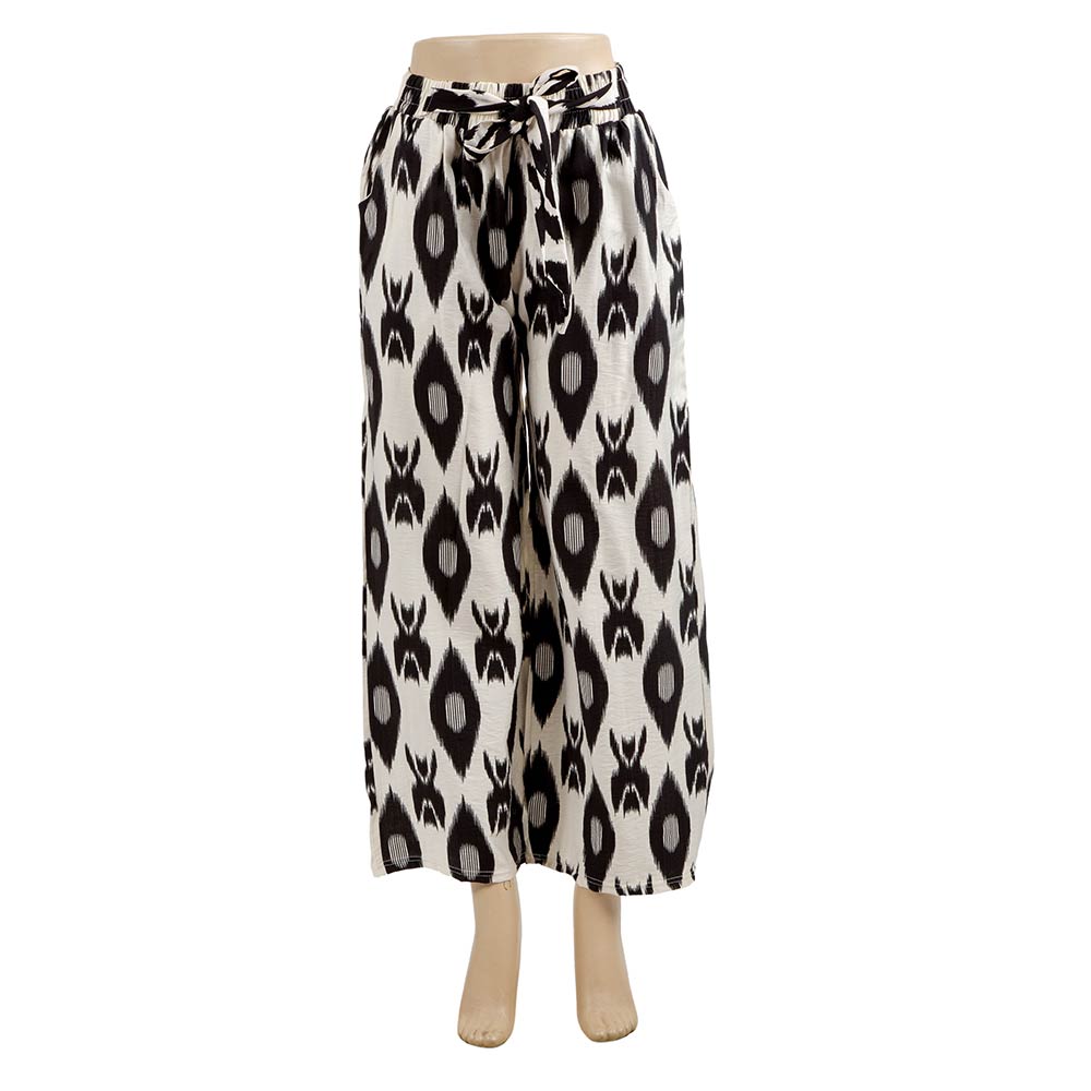 • Statement ikat pattern wide leg pants featuring a relaxed fit and easy elastic waistband for everyday comfort. Designed for effortless styling, these pull-on pants offer fluid movement and a flattering silhouette. Ideal for casual wear, travel looks, or boutique collections, they pair seamlessly with simple tops and layered outfits for versatile, seasonless appeal.