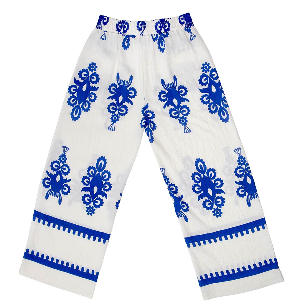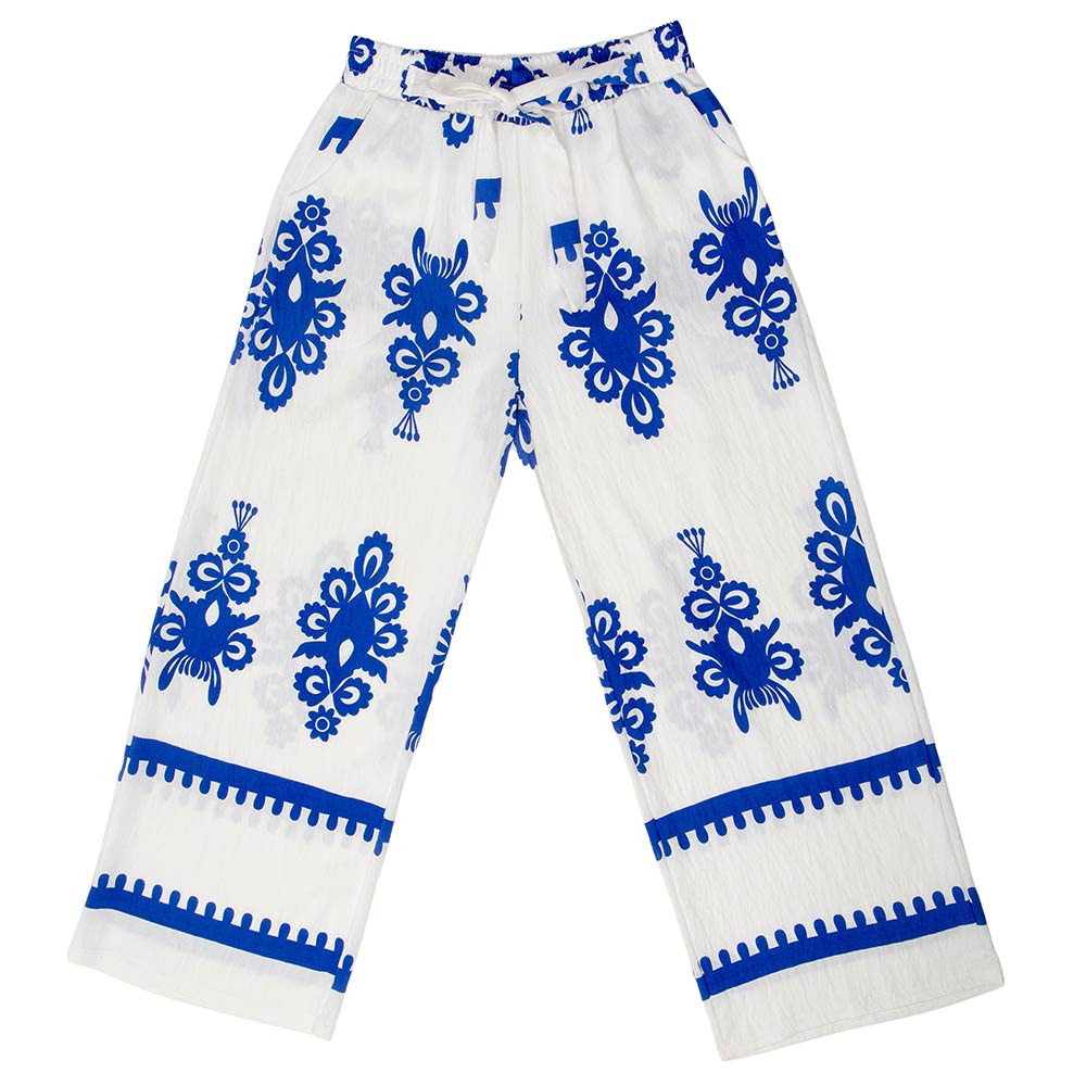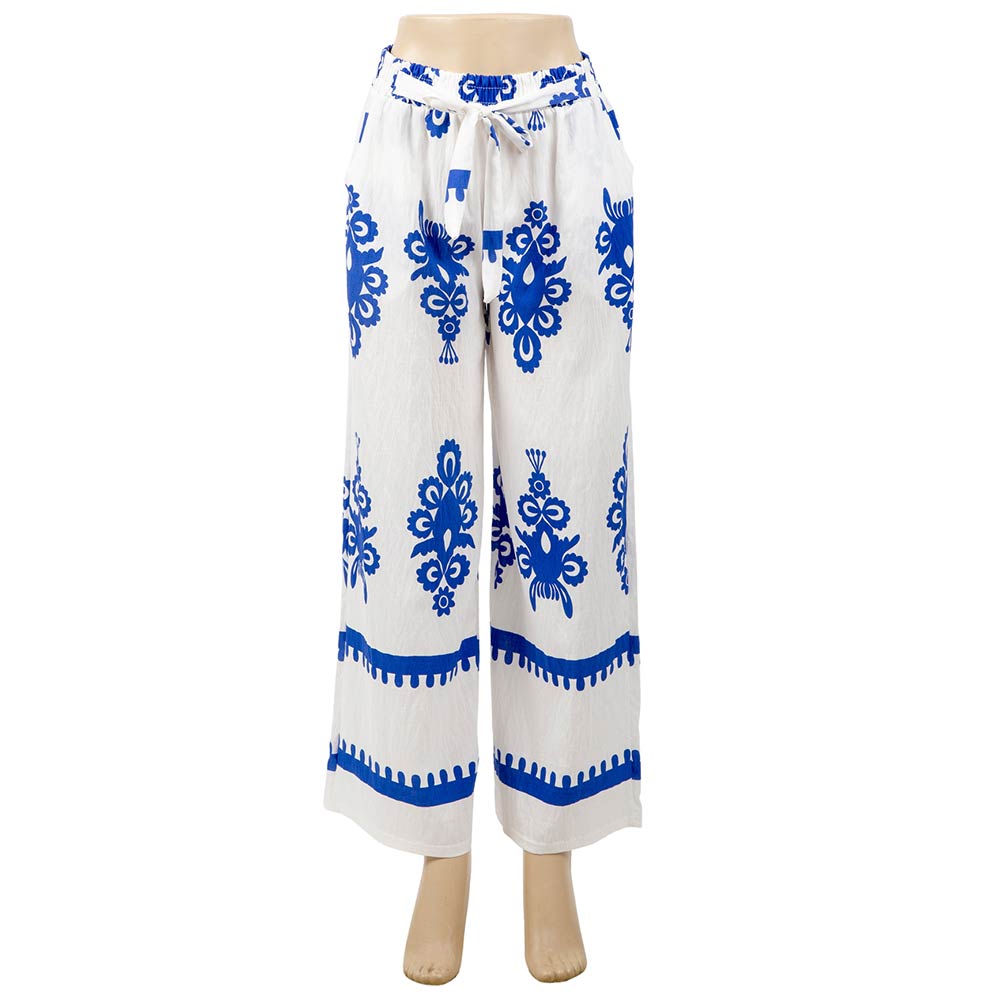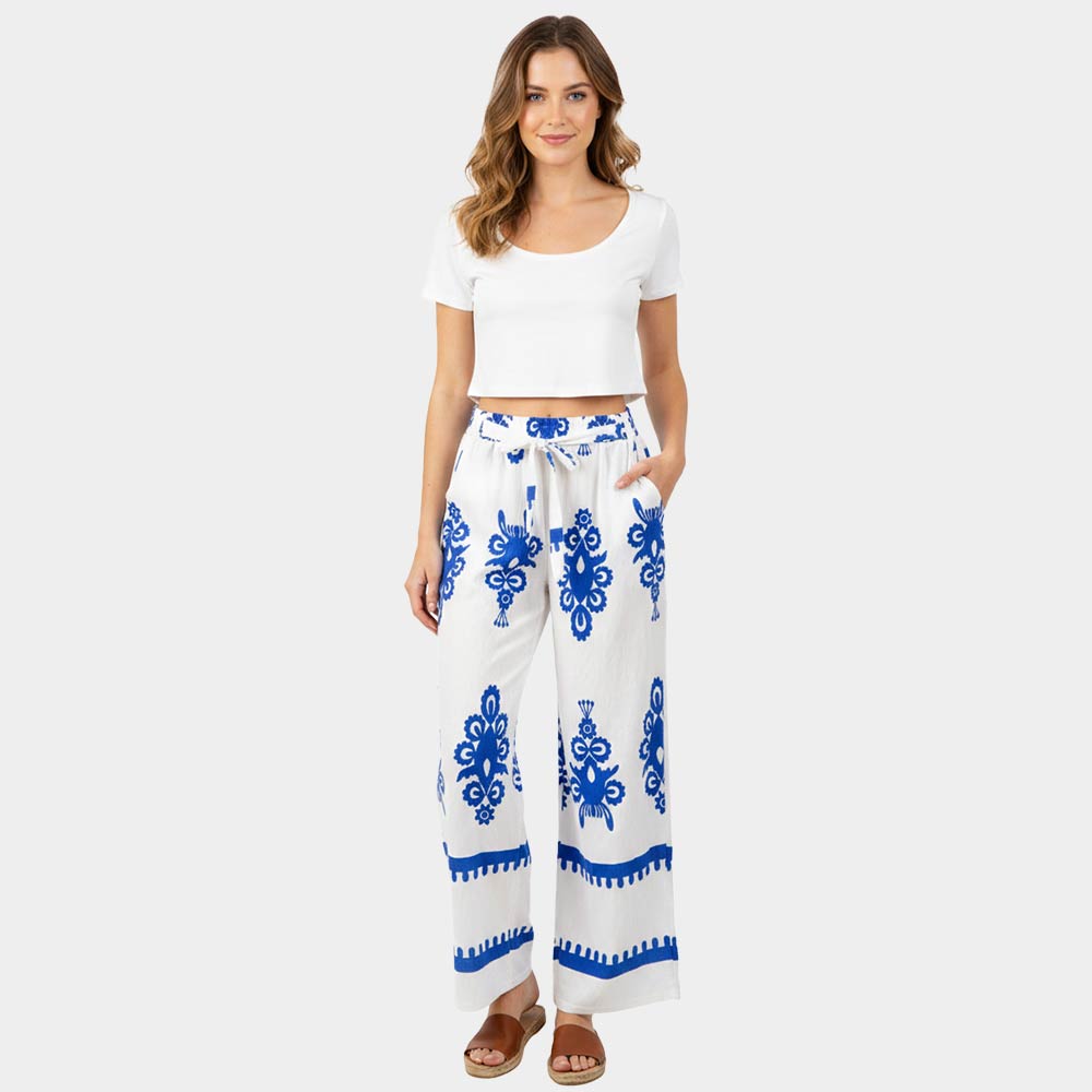 • Flowy wide leg pants designed with an ornate allover print and an easy elastic waistband for comfortable pull-on wear. The relaxed silhouette creates a flattering drape with effortless movement, making these pants ideal for everyday styling, resort looks, or boutique collections. A versatile statement piece that pairs easily with simple tops, sandals, or layered outfits for casual to elevated wear.