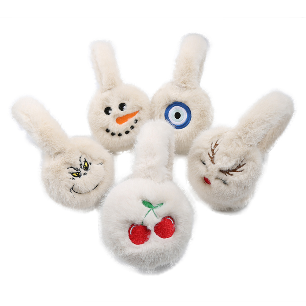 Faux Fur Plush Cherry Embroidered Earmuffs