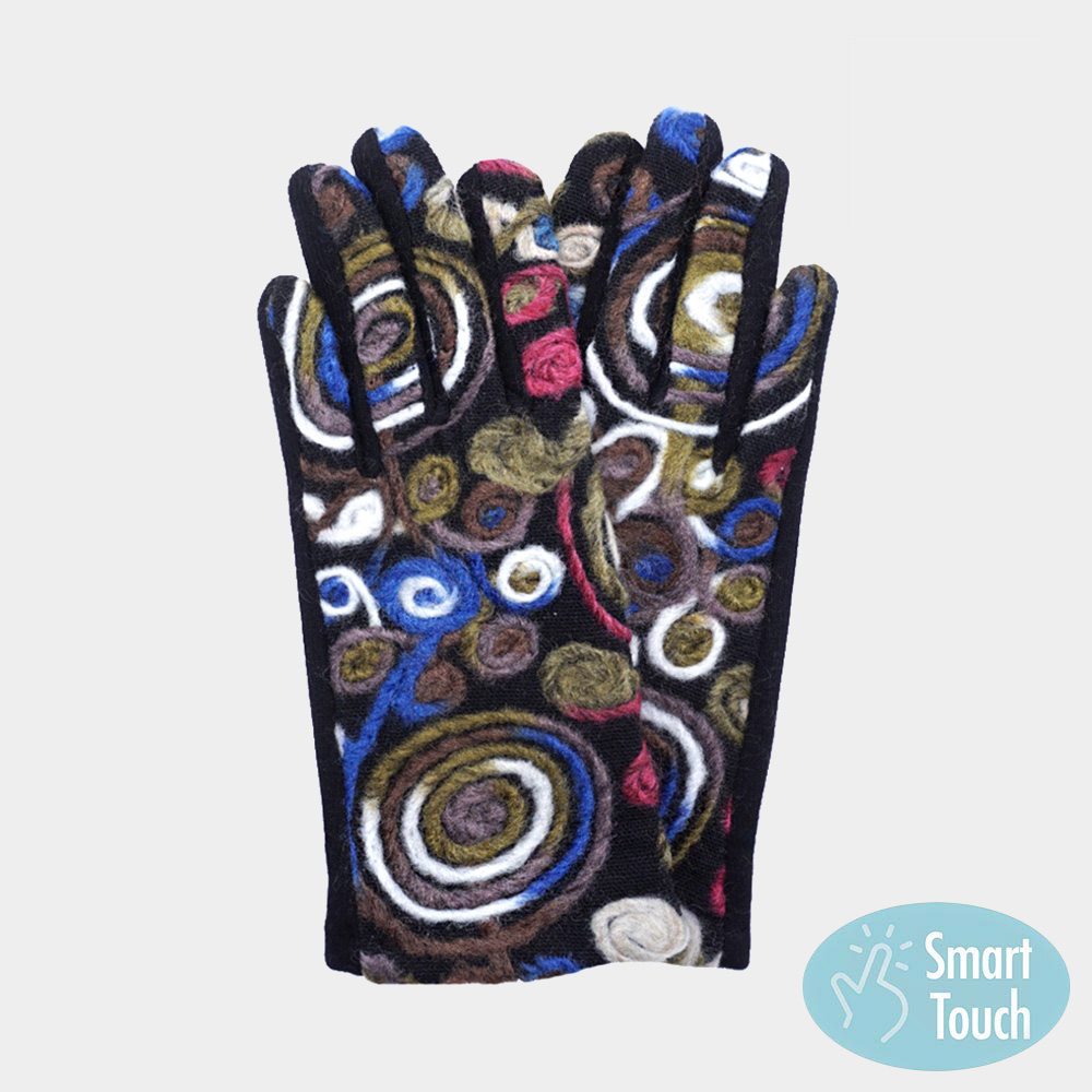 Abstract Swirl Yarn Embroidered Smart Touch Gloves
