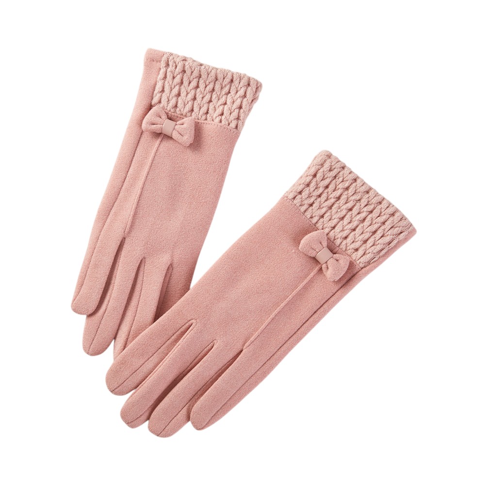 Details • Size : One Size • Smart Touch • Material : 100% Polyester • Cozy winter gloves featuring a textured knitted cuff and delicate bow accent for added charm. Soft and comfortable, these stylish gloves provide warmth while adding a feminine touch, perfect for casual wear or complementing dressy cold-weather outfits.