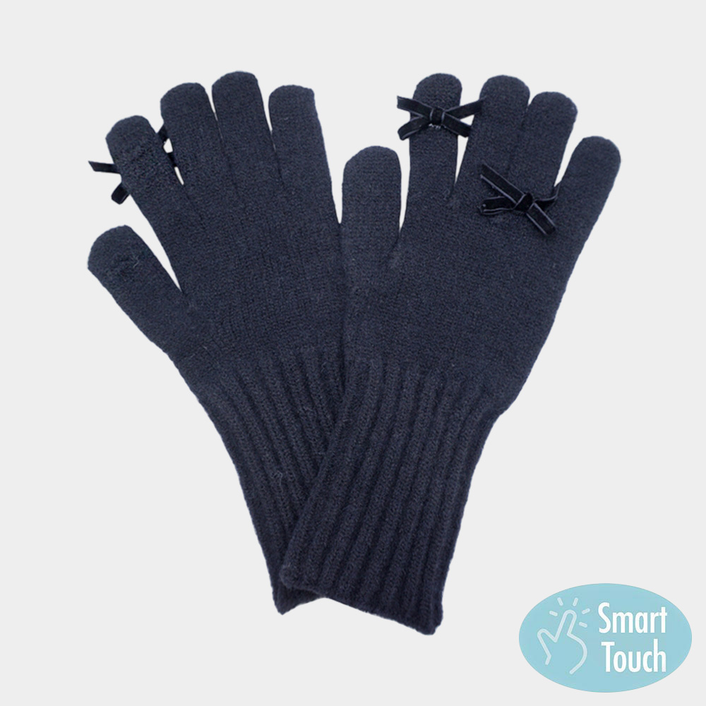Bow Accent Ribbed Knit Smart Touch Gloves Bow Accent Ribbed Knit Smart Touch Gloves