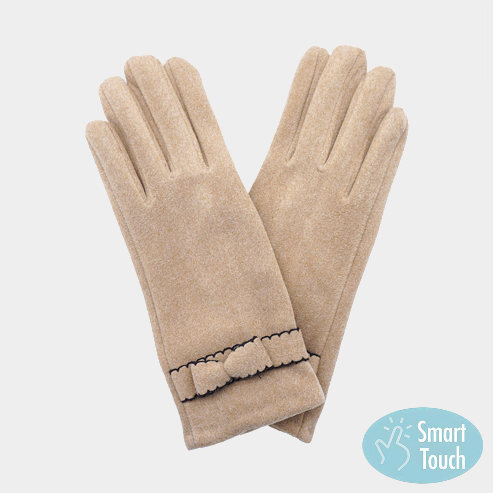 Bow Pointed Faux Suede Smart Touch Gloves