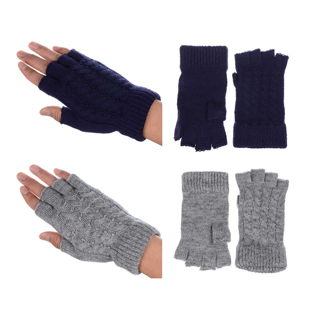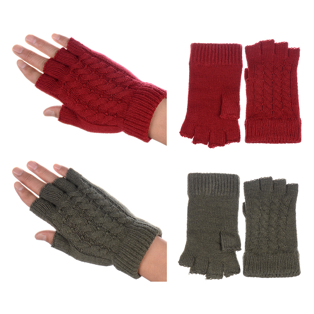 Details • Size : One Size • Material : 80% Acrylic, 20% Nylon • Warm and cozy cable knit fingerless gloves designed with ribbed cuffs for a snug, comfortable fit. Perfect for keeping hands warm while allowing free movement, these stylish gloves are ideal for cold-weather days, adding both texture and charm to any winter outfit.