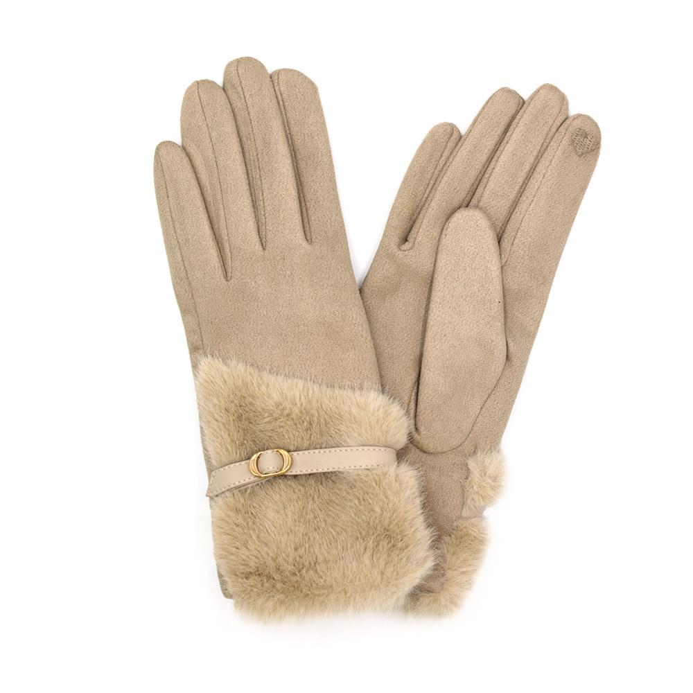 Faux Fur And Strap Cuff Smart Touch Gloves