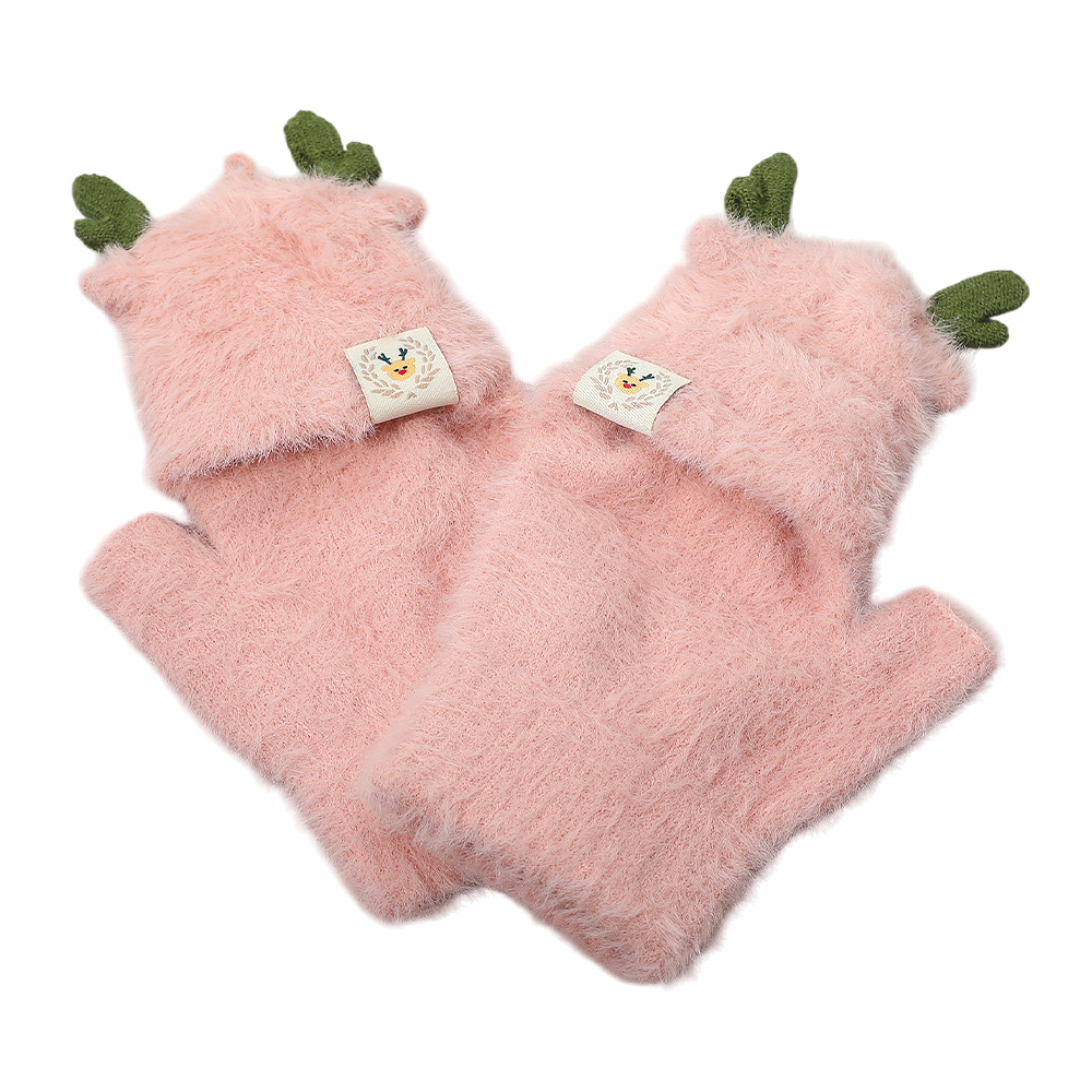 Fuzzy Reindeer Ear Fingerless Flap Winter Gloves