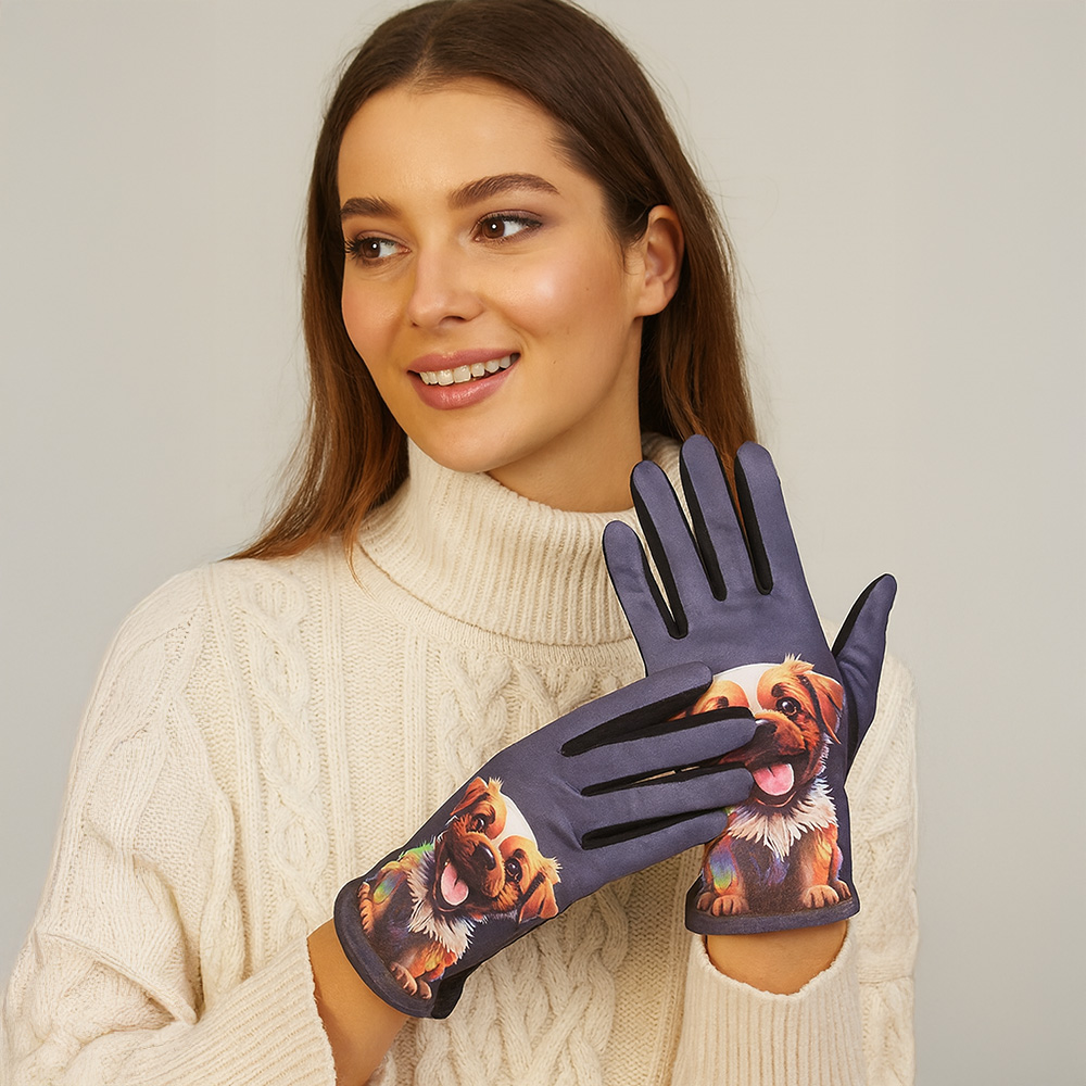 • Add charm to your winter style with these smart touch gloves featuring an adorable puppy design. Combining warmth, comfort, and touchscreen compatibility, they make a fun and functional accessory for pet lovers on the go.