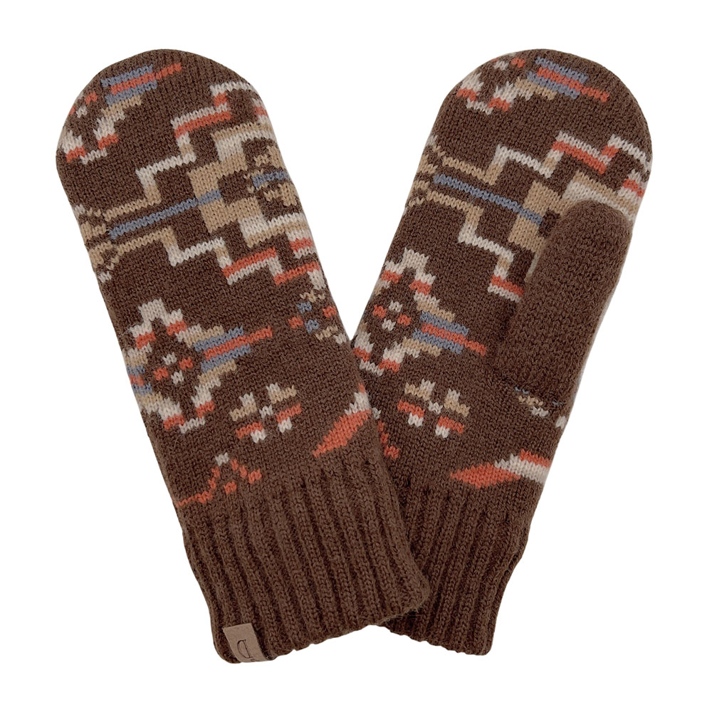 Ribbed Cuff Aztec Patterned Knit Winter Mittens