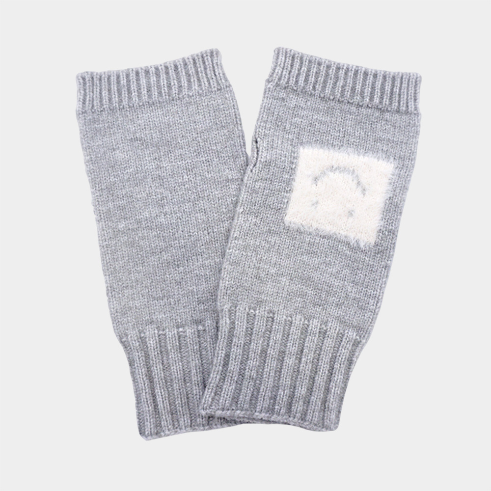 Details • Size : One Size • Material : 100% Polyester • Soft fingerless knit gloves featuring a playful smiley detail, designed for warmth and comfort while keeping your fingers free. Perfect for layering in cooler weather, they offer both practicality and casual charm for everyday wear.