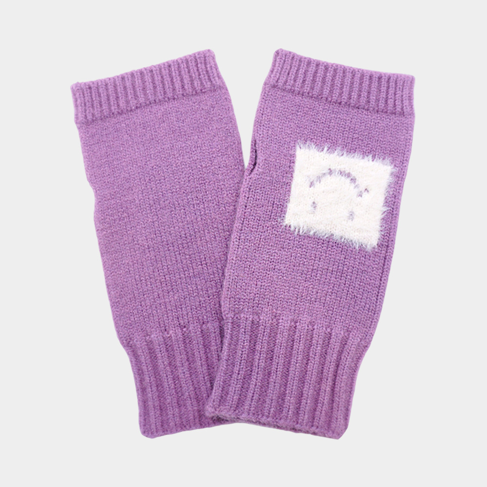 Square Smile Face Accent Fingerless Knit Gloves