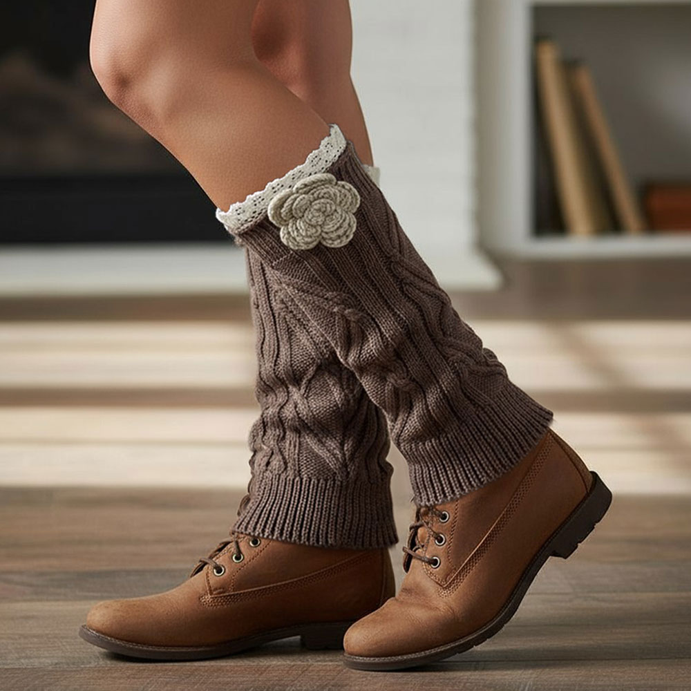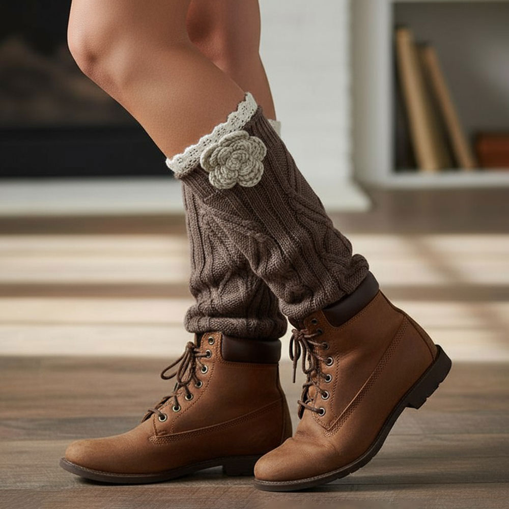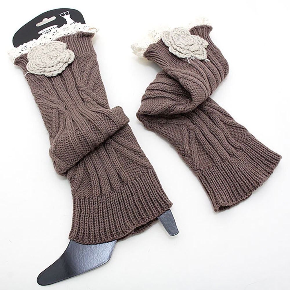 • Complete your fall or winter outfit with these cozy knit boot cuffs featuring a delicate crochet flower and lace trim. Designed for a comfortable fit, they add warmth and a charming layered accent above your boots, perfect for casual days, outdoor strolls, or stylish seasonal looks.