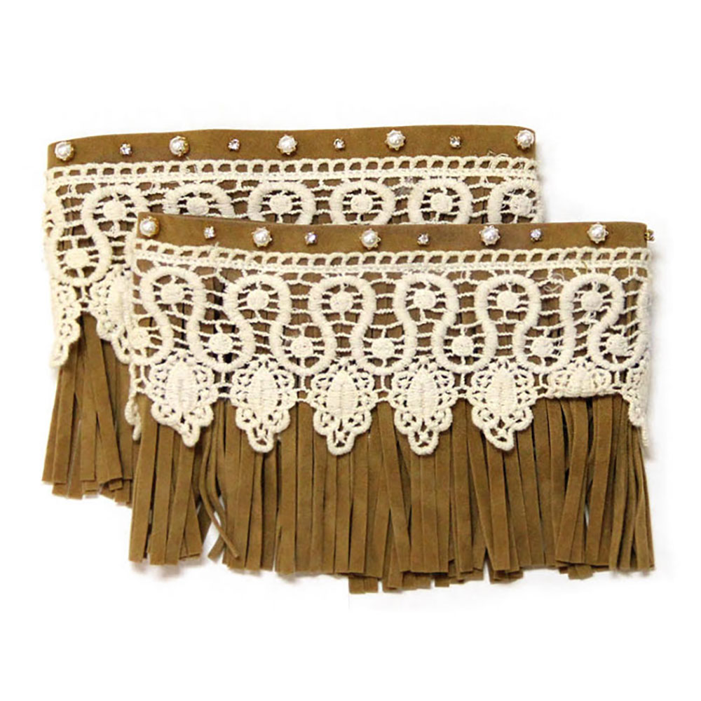 • These lace fringe boot cuff accessories bring a touch of boho-chic flair to any outfit. Featuring elegant lace detail and playful fringe, they slip easily over boots for an instant style upgrade. Perfect for adding texture and feminine charm to both casual and dressy seasonal looks.