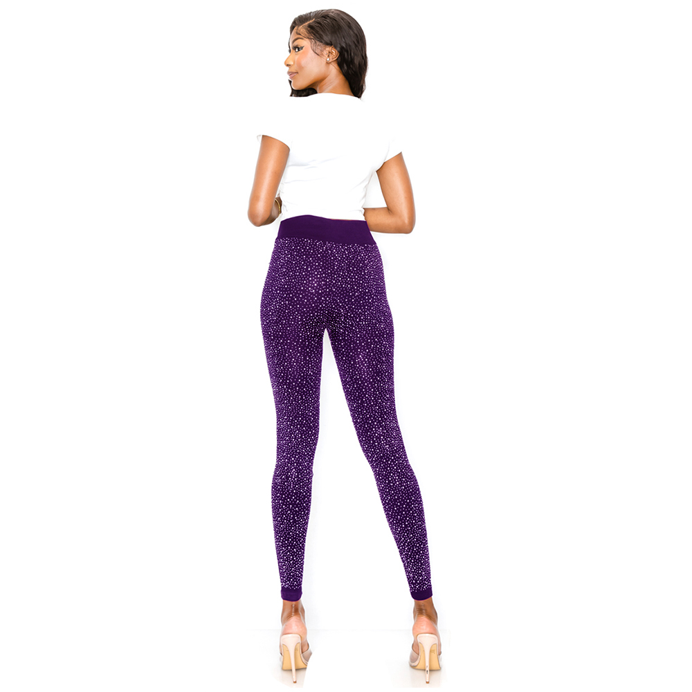 • High-waisted purple leggings with allover glitter detail in a comfy 3XL/4XL fit. Stylish and stretchy for effortless glam on the go.