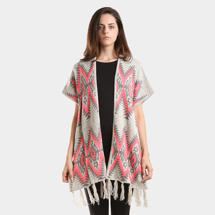 Aztec chevron pattern tassel edge shawl sweater